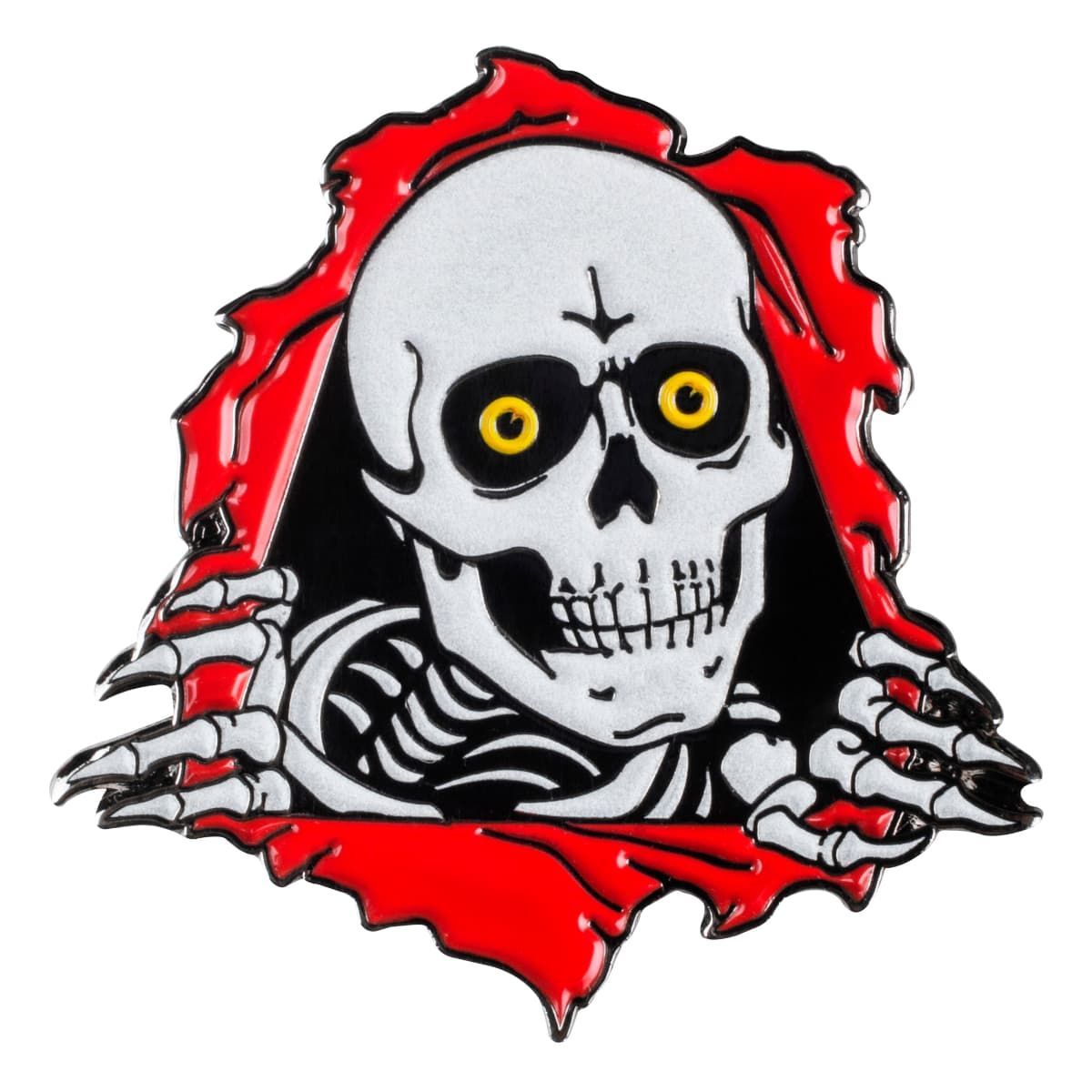 Muestra tu amor por el skateboarding incluso en la oscuridad con la Insignia metálica Ripper GLow in the Dark de Powell Peralta.