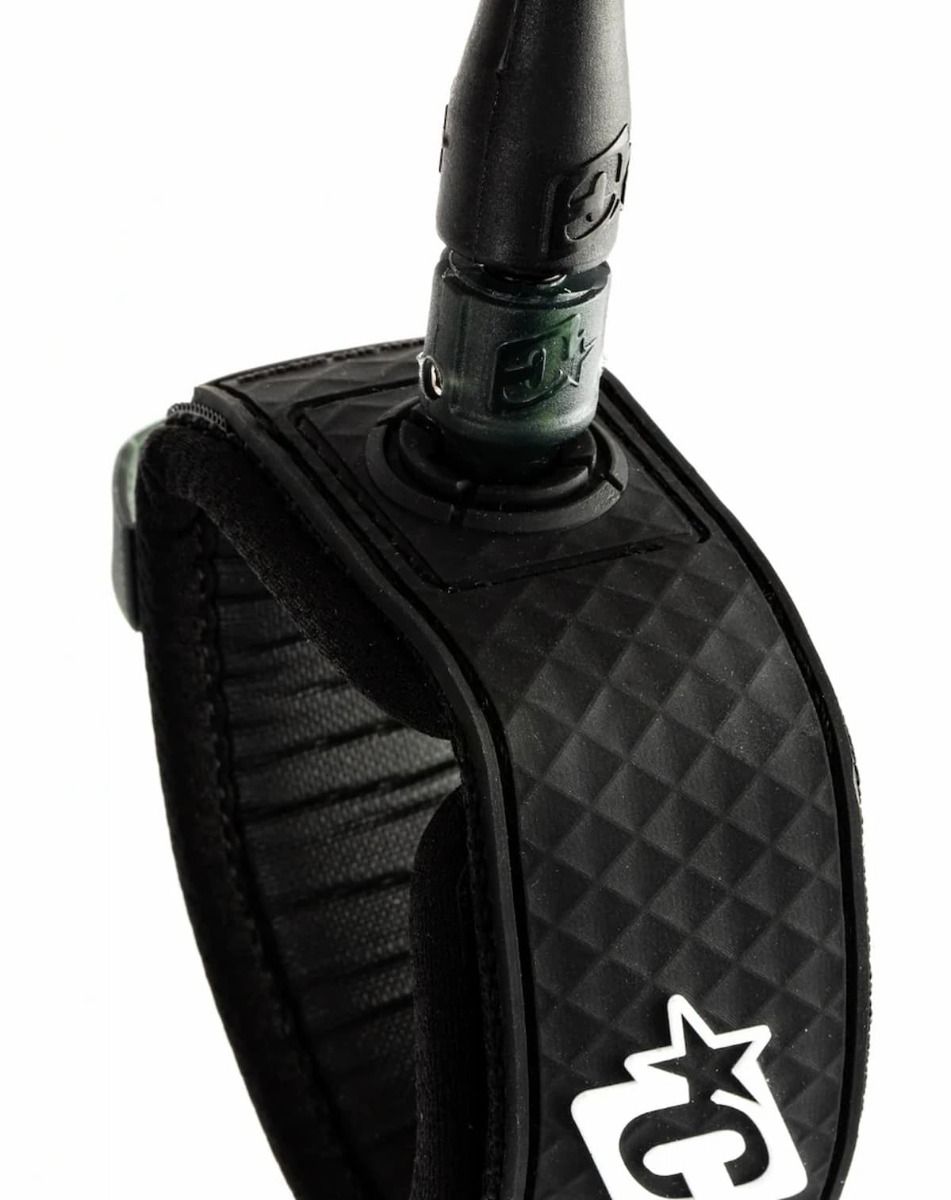 Fabricado con un grosor de cuerda de 9/32" (7 mm) y un largo total de 6 pies (1,8 m), este leash combina robustez con flexibilidad. Su tobillera de 1 1/2" (38 mm) acolchada garantiza un ajuste cómodo incluso en sesiones prolongadas, mientras que el railsaver de 1" (25 mm) protege el tail de tu tabla sin comprometer la libertad de movimiento.