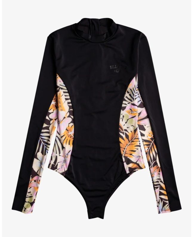 Licra de protección solar con manga larga Billabong Surf Capsule UPF 50 en color negro floral para mujer