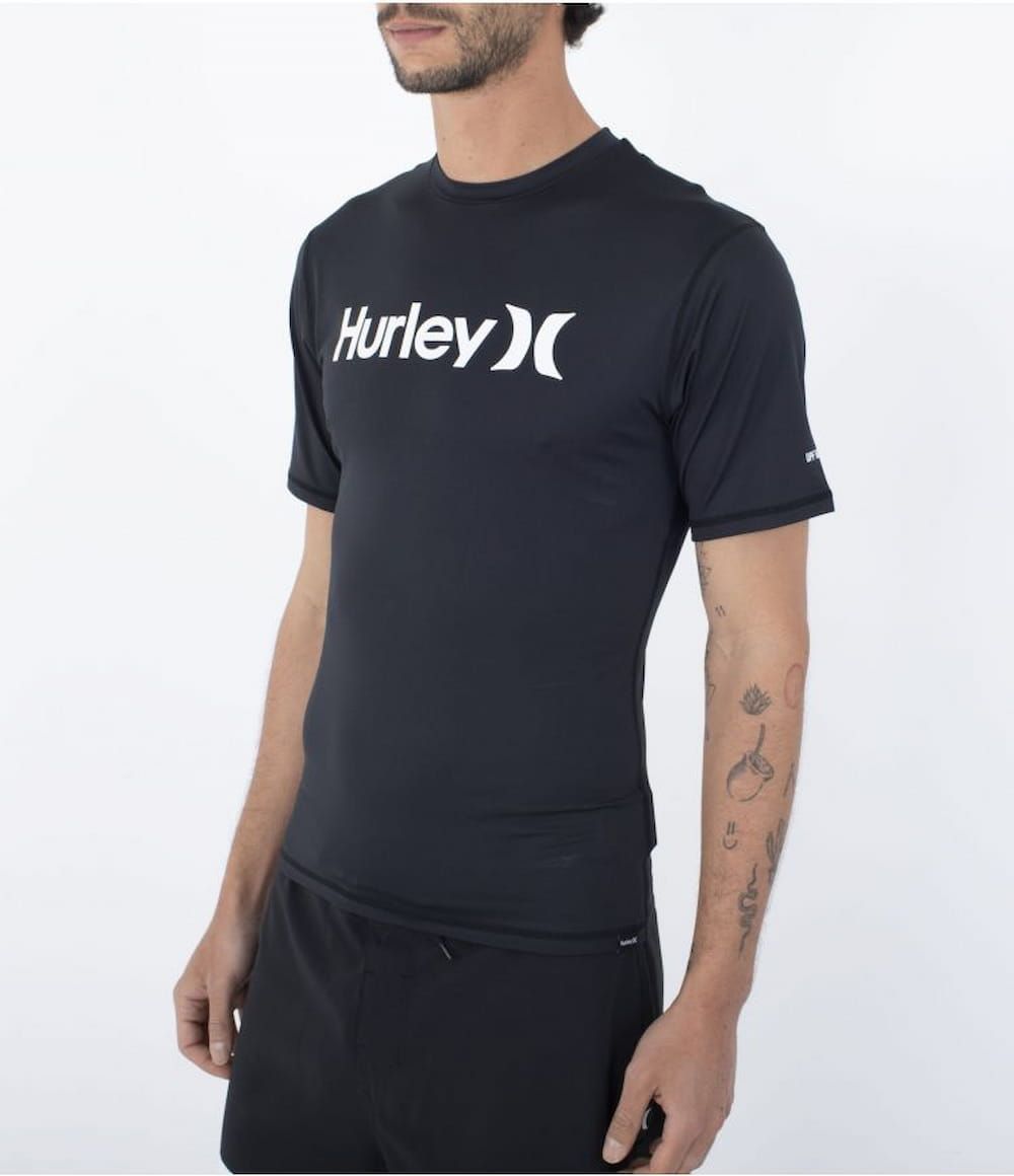 ¡Protege tu piel de los rayos UV nocivos con la Camiseta de surf con manga corta One and Only Quickdry Rashguard UPF 50+ Negra para hombre de Hurley!