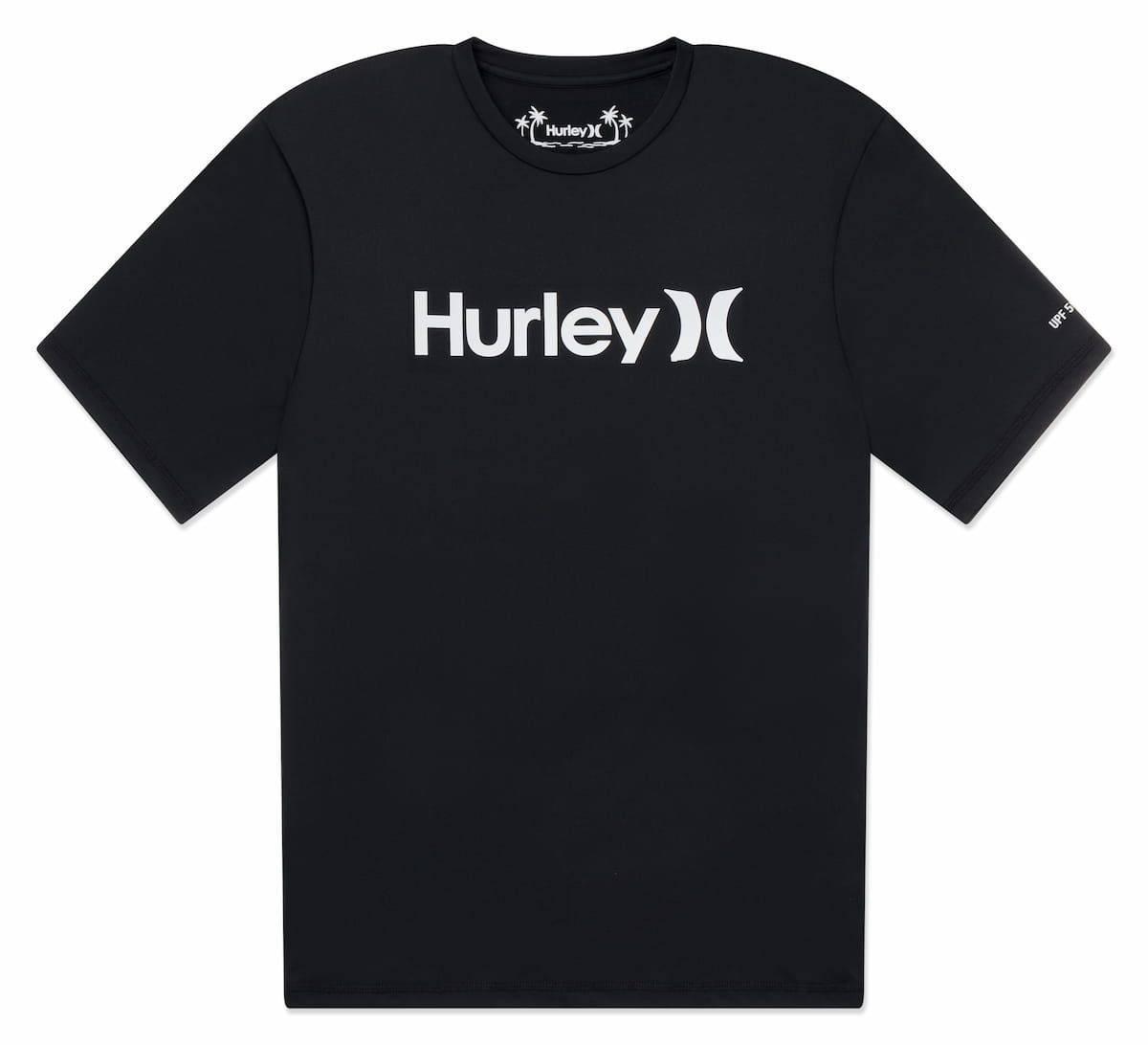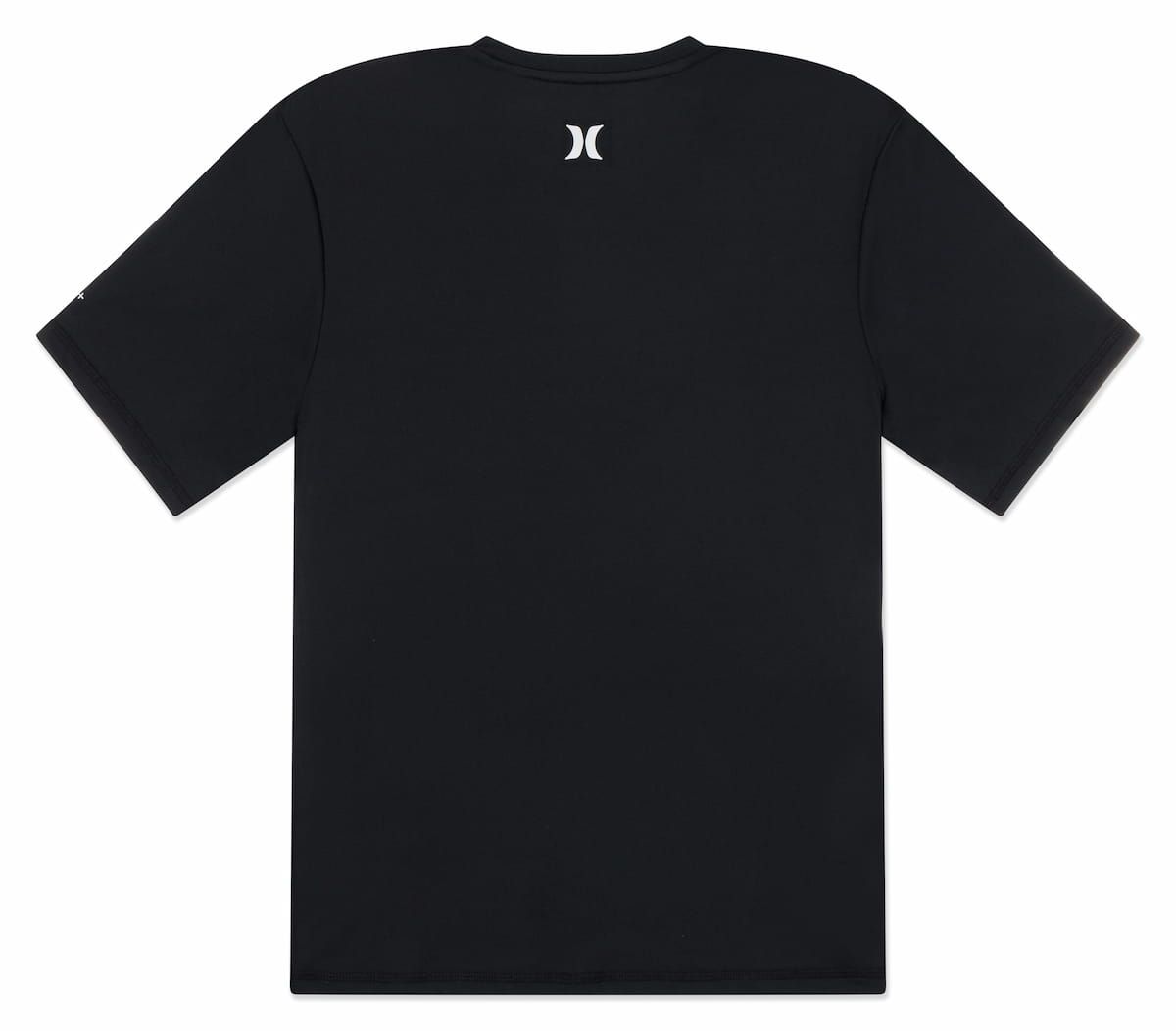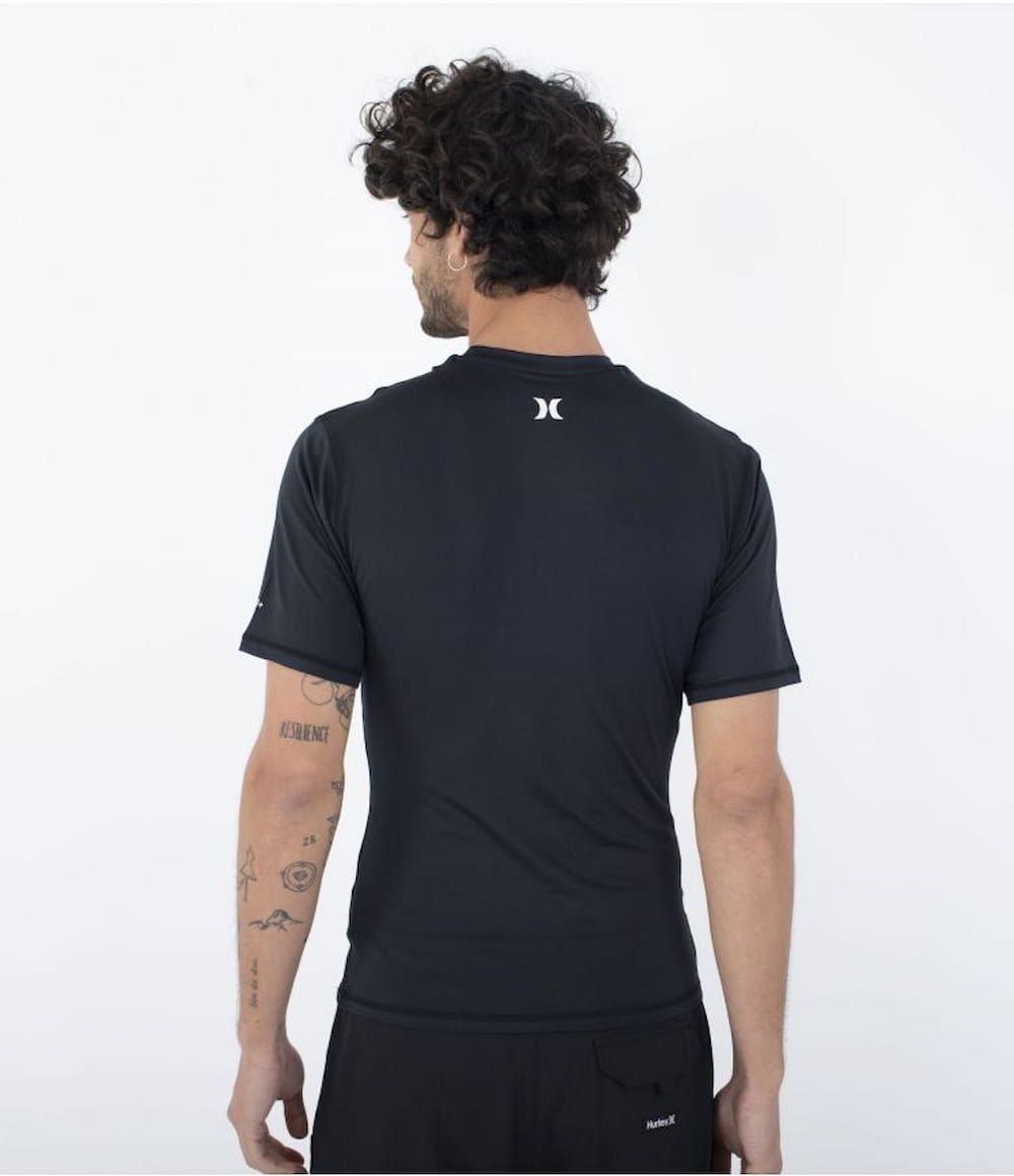 Esta licra antiabrasión en tono negro cuenta con manga corta, cuello redondo, tejido de secado rápido con protección solar UPF 50+, el logo Icon impreso en la espalda y el logo de Hurley One and Only serigrafiado en el pecho.