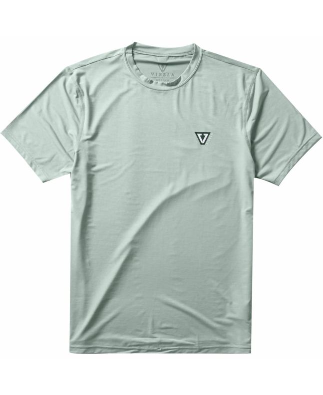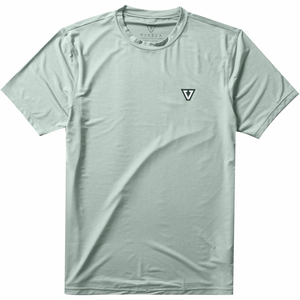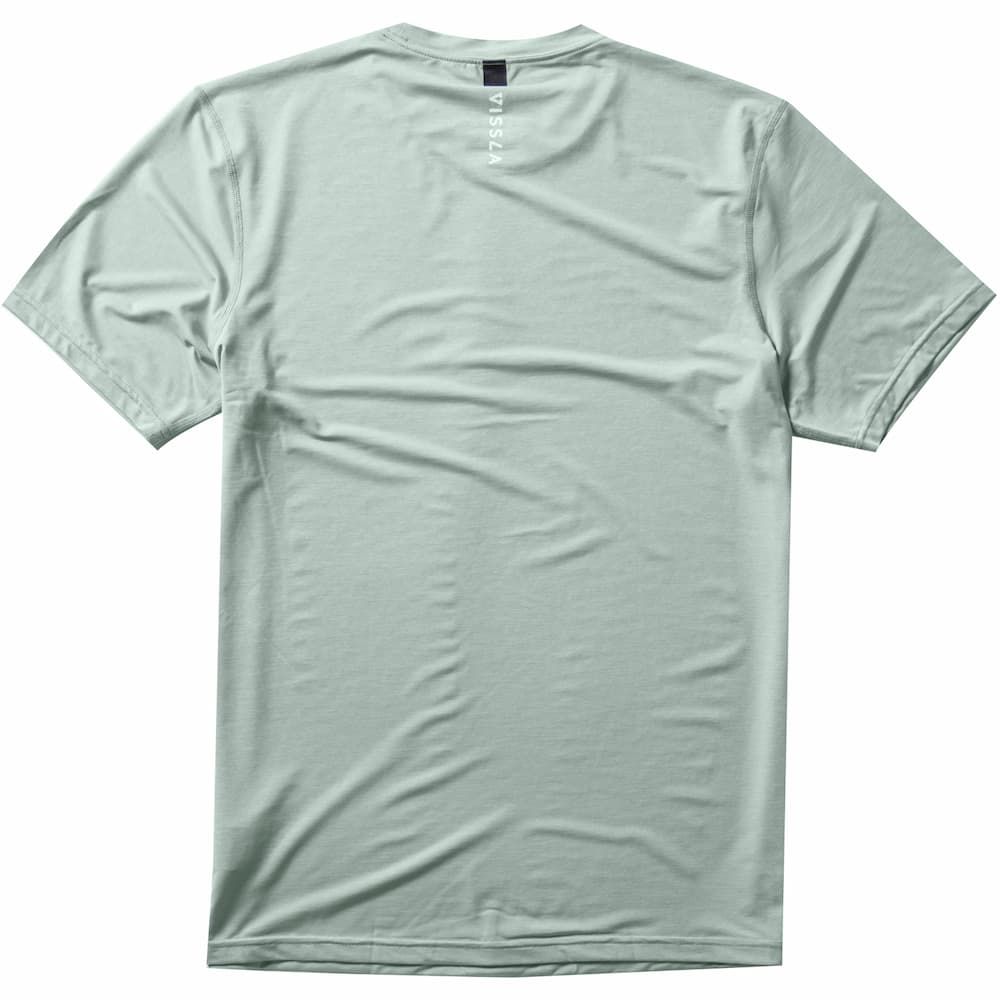 La camiseta de protección solar de manga corta para hombre Twisted ECO SS Lycra Rashguard UPF 50+ en tono verde (Sea Green Heather) de Vissla está confeccionada con 85% poliéster reciclado y 15% elastano reciclado.