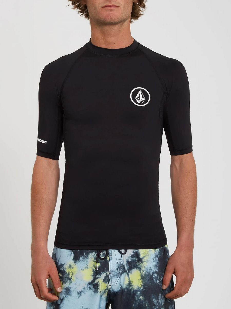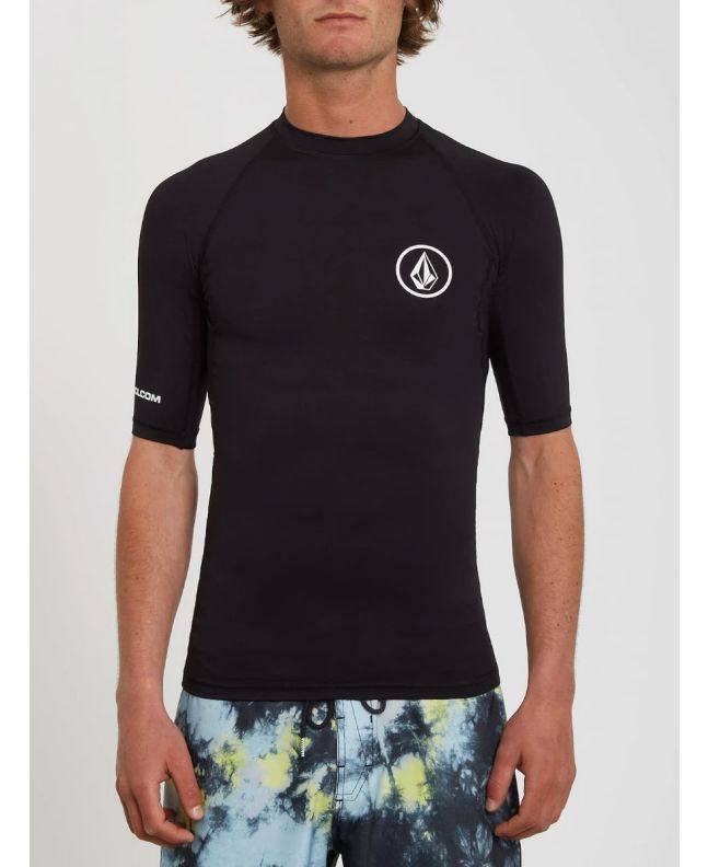 Camiseta elástica de protección solar UPF 50+ de manga corta Volcom Lido Solid en color negro para hombre
