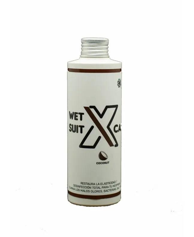 El jabón para neopreno WetsuitxCare Coconut 250ml es un limpiador 100% biodegradable que desinfecta en profundidad y devuelve la elasticidad a tu traje de surf.