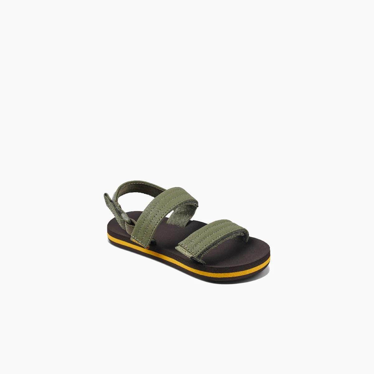 Las sandalias para niño Little Ahi Convertible en verde oliva y la suela en tono marrón (Brown-Olive) de Reef están confeccionadas con suave tejido de piel sintética y goma EVA.