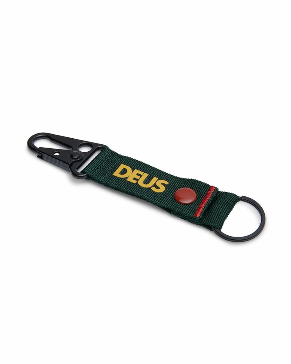 El llavero Fortuity Keyholder en tono verde (Forest) de Deus Ex Machina está confeccionado con resistente cinta de poliéster 100%.