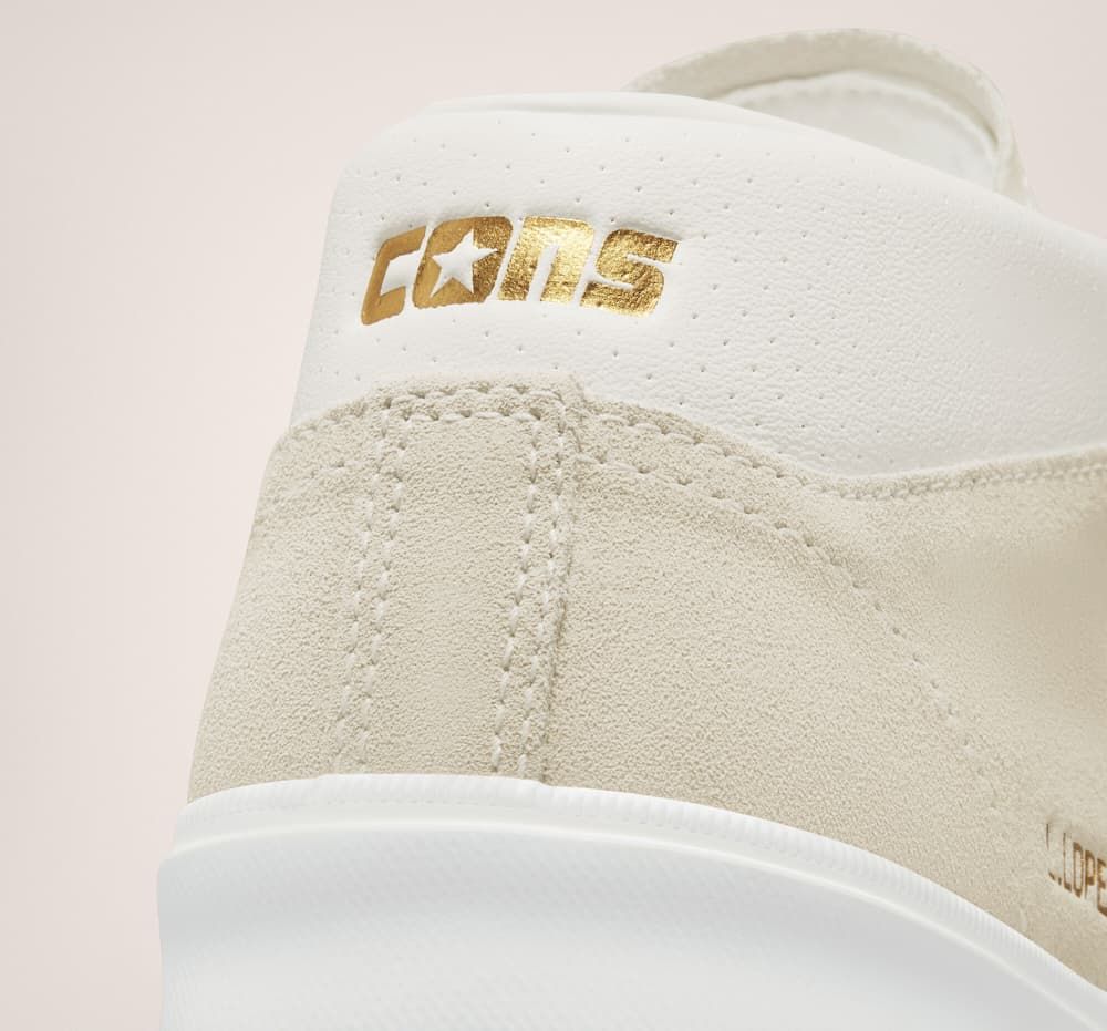 Estas zapatillas de corte medio diseñadas por el skater Pro Louie Lopez cuentan con los detalles que él mismo indicó durante la colaboración con el equipo de diseño de Converse, detalles en relieve en dorado con el logo de Louie Lopez.