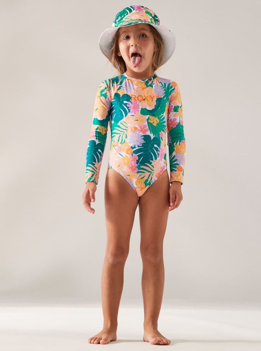 El bañador entero de manga larga Paradisiac Islands Kids verde menta tropical para niña tiene el sello de garantía Roxy.