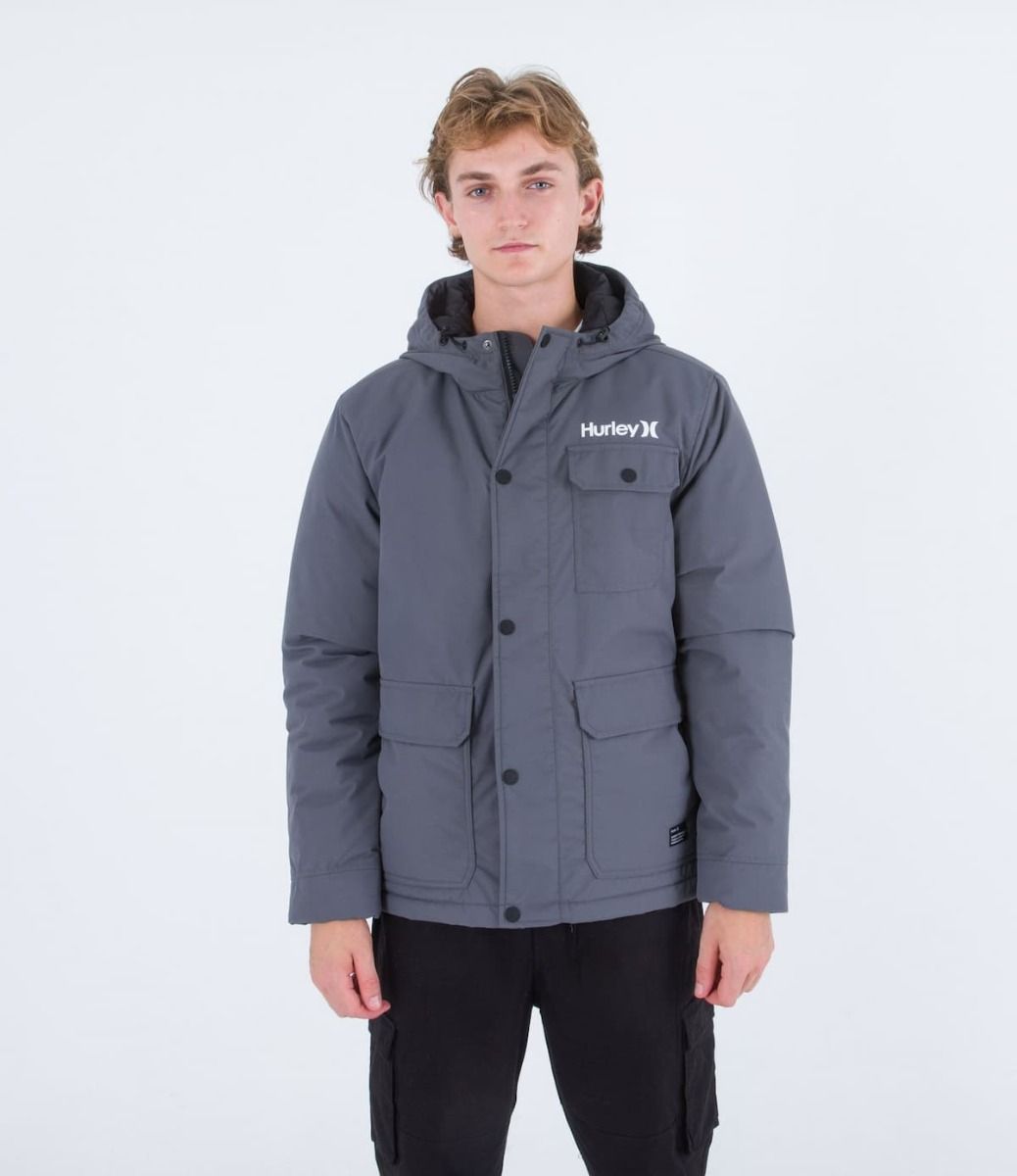 La chaqueta para hombre Idyllwild 3M Parka en gris (Iron Grey) de Hurley está confeccionada con tecnología 3M™ Thinsulate Insulation de 100% nylon oxford para mantenerte aislado del frío.