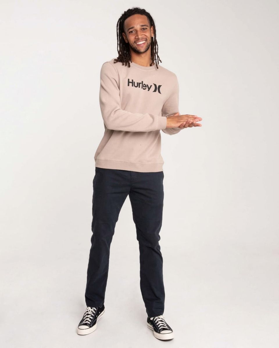 La sudadera sin capucha para hombre One and Only Seasonal Crew Fleece en beige (Simply Taupe) de Hurley está fabricada con 80% algodón y 20% poliéster (300gsm).