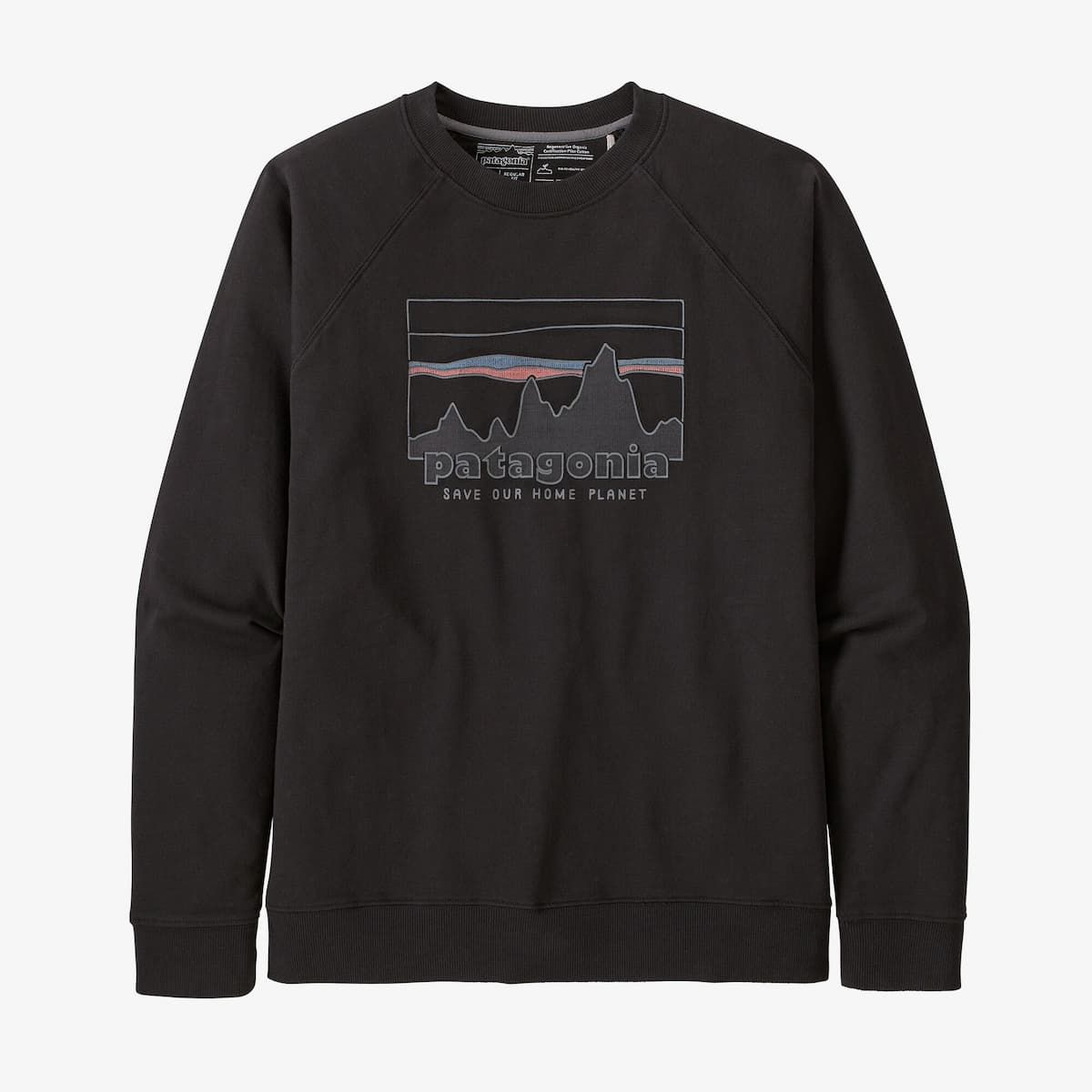 La sudadera sin capucha para hombre '73 Skyline en negro (Black) de Patagonia está fabricada con tejido de rizo francés de 100% algodón orgánico suave, por lo que utiliza menos agua y crea menos de CO2 que una sudadera de algodón convencional.