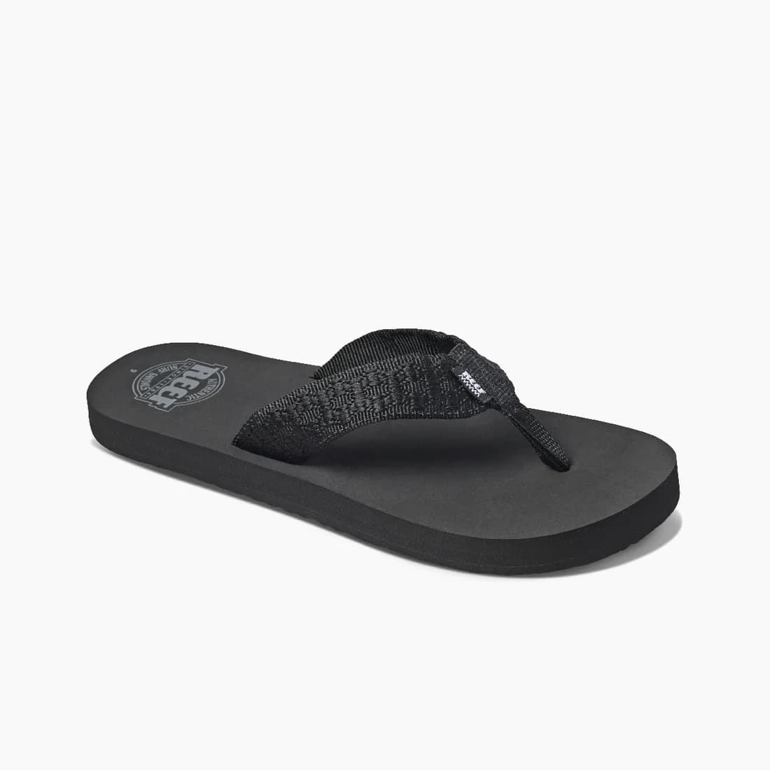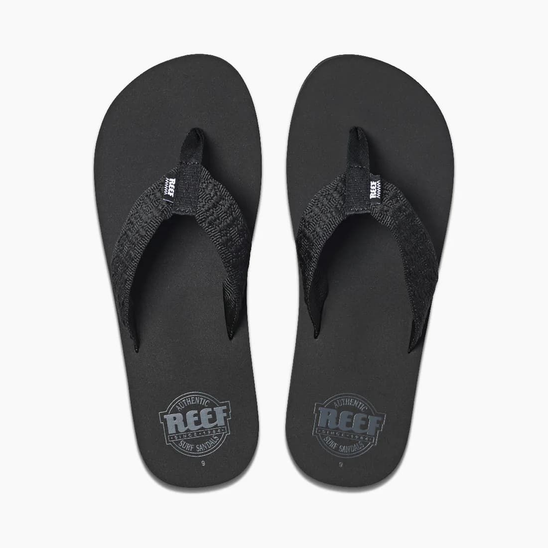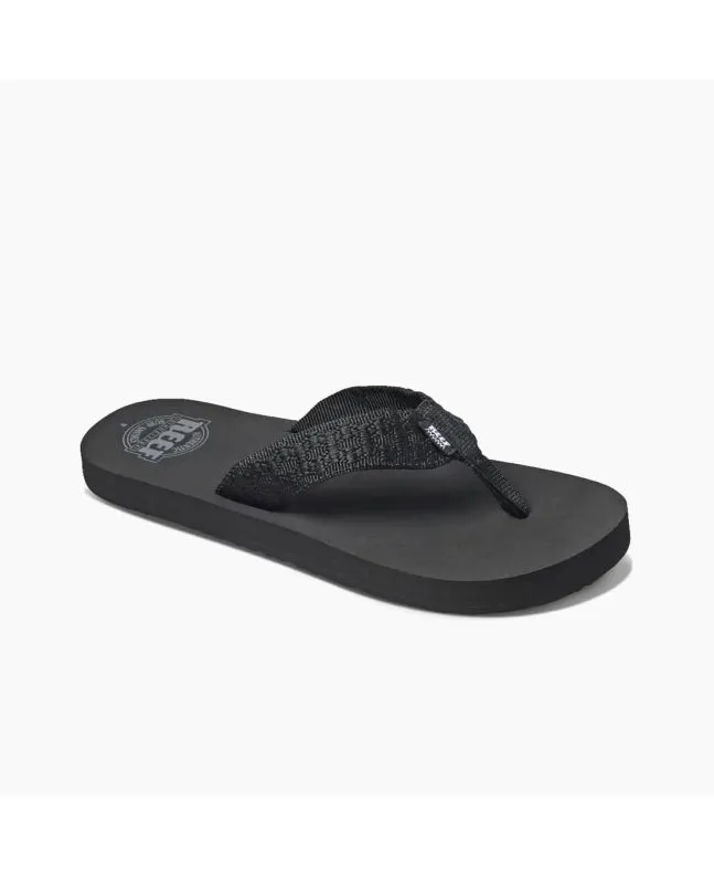 Las chanclas Smoothy negras para hombre tienen una etiqueta de garantía Reef tejida en la tira del empeine.