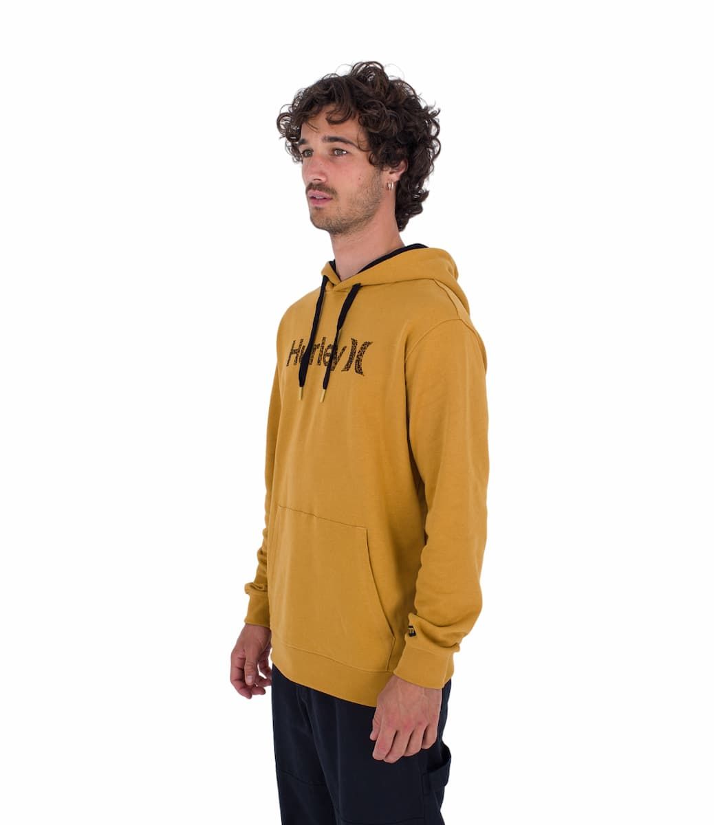 La sudadera con capucha Toledo Basic Cheddar para hombre tiene una etiqueta de Hurley One & Only tejida en el dobladillo.
