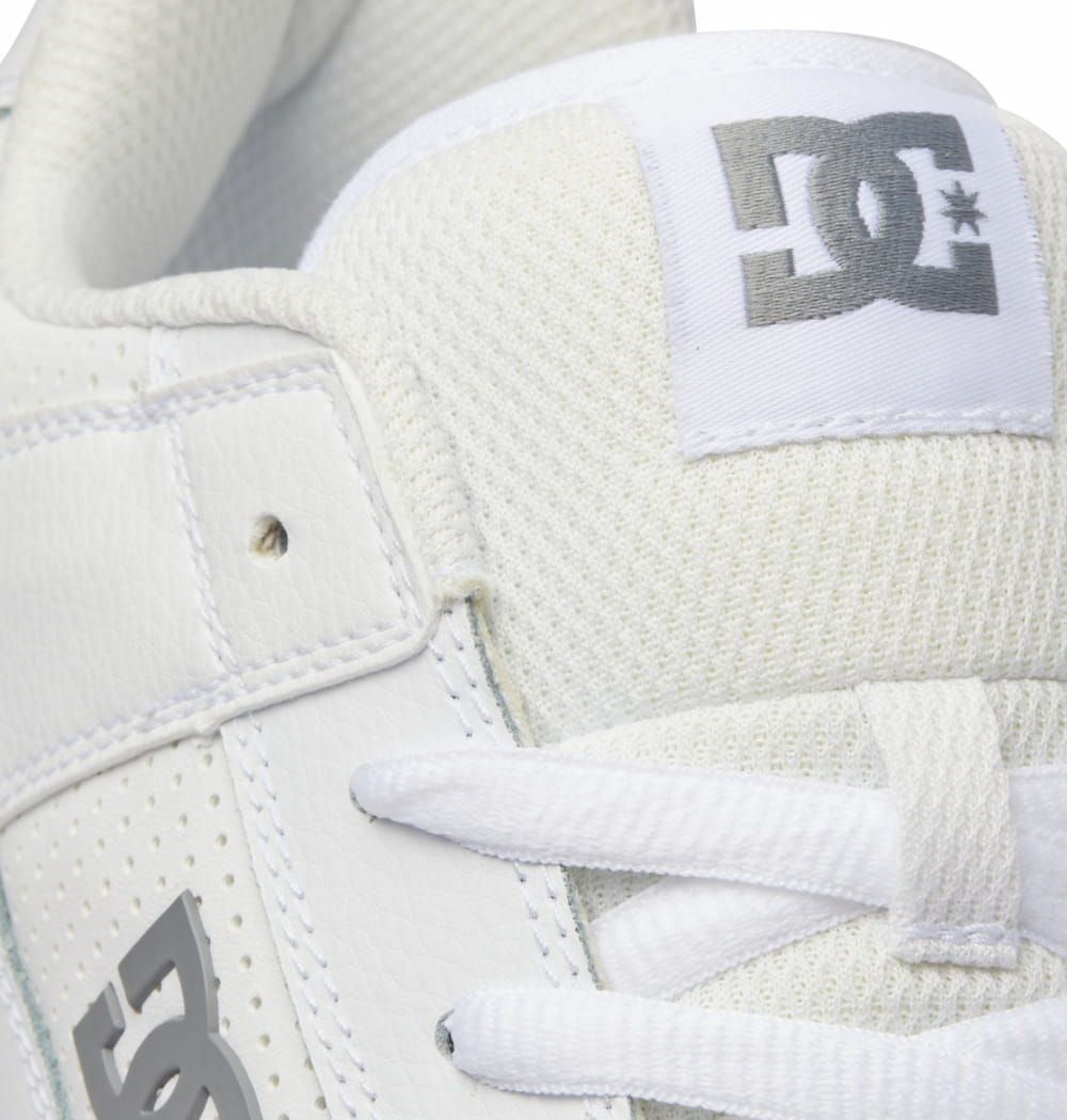 Estas deportivas para patinar presentan un elegante diseño en blanco, parte superior de cuero o nubuck, tejido interior de malla, plantilla interior envolvente de EVA, lengüeta y cuello acolchados con espuma para mayor confort y sujeción, tiras para mantener la lengüeta en el centro, suela exterior de goma adherente resistente a la abrasión con patrón de agarre Pill Pattern y el logo de DC Shoes de TPR inyectado en el lateral.
