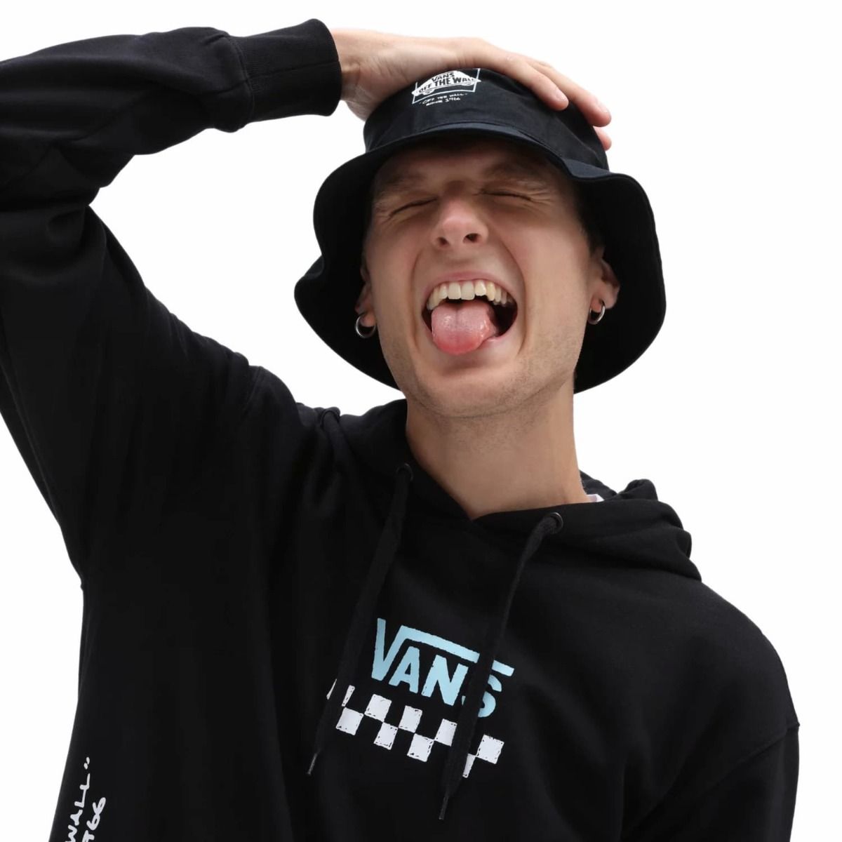 Este gorro de pescador estilo retro cuenta con el logo Vans "Off The Wall" estampado en la parte delantera.