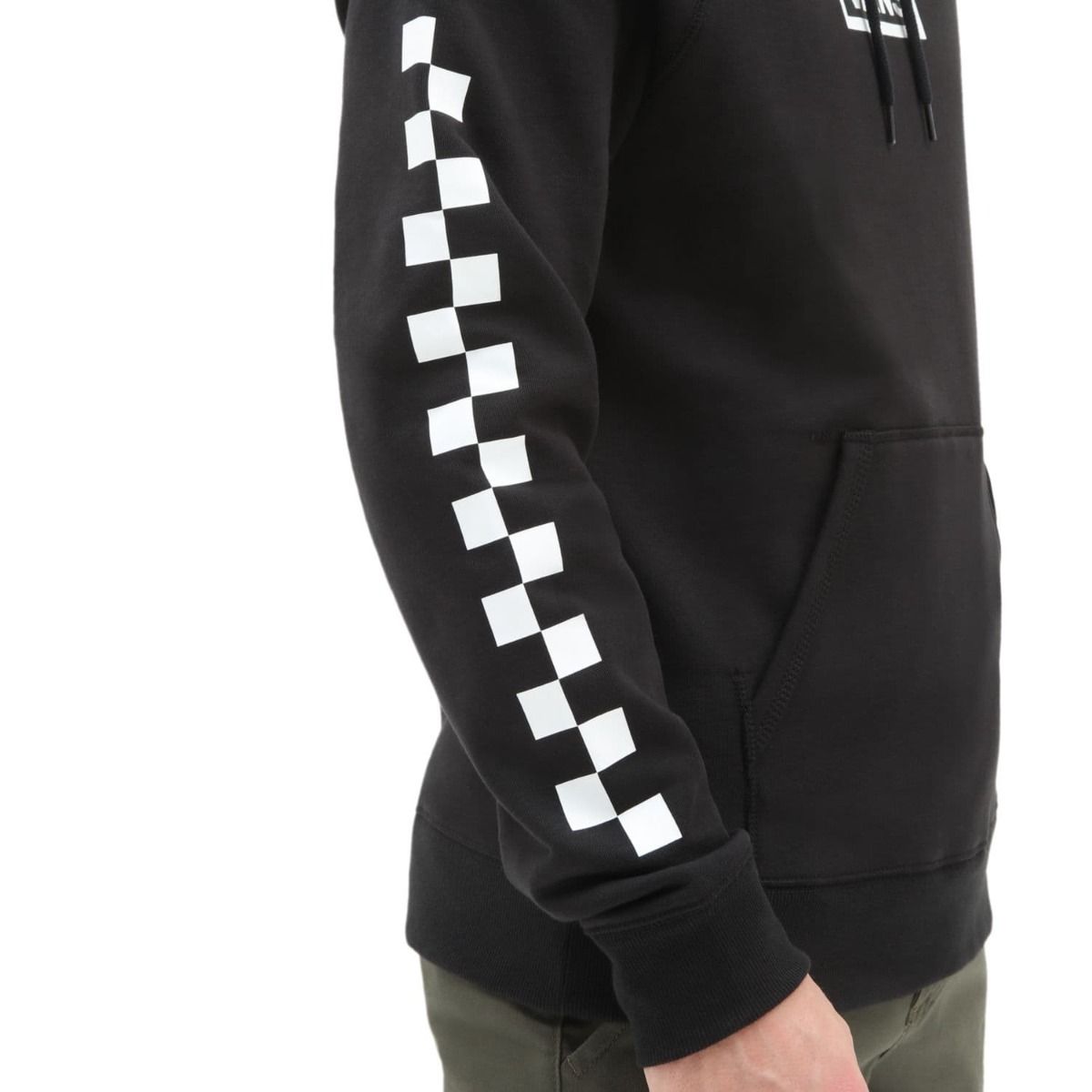Este cómodo hoodie diseñado para patinar cuenta con revestimiento hidrófugo duradero que repele el agua para mantenerte seco durante más tiempo, capucha ajustable mediante cordón, un amplio bolsillo tipo canguro, estampado checkerboard en la manga derecha y el logo clásico de Vans serigrafiado en la parte delantera.