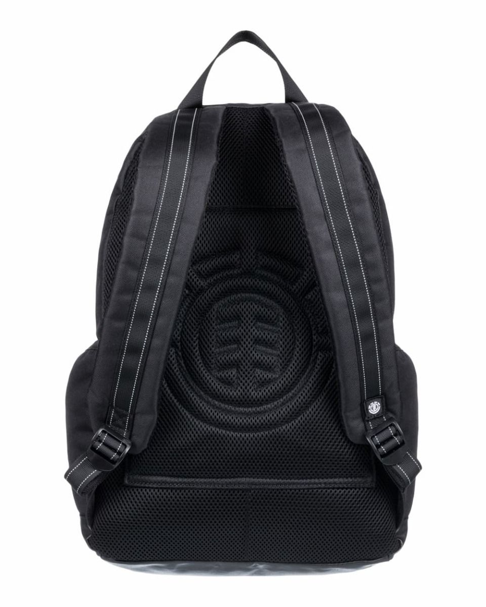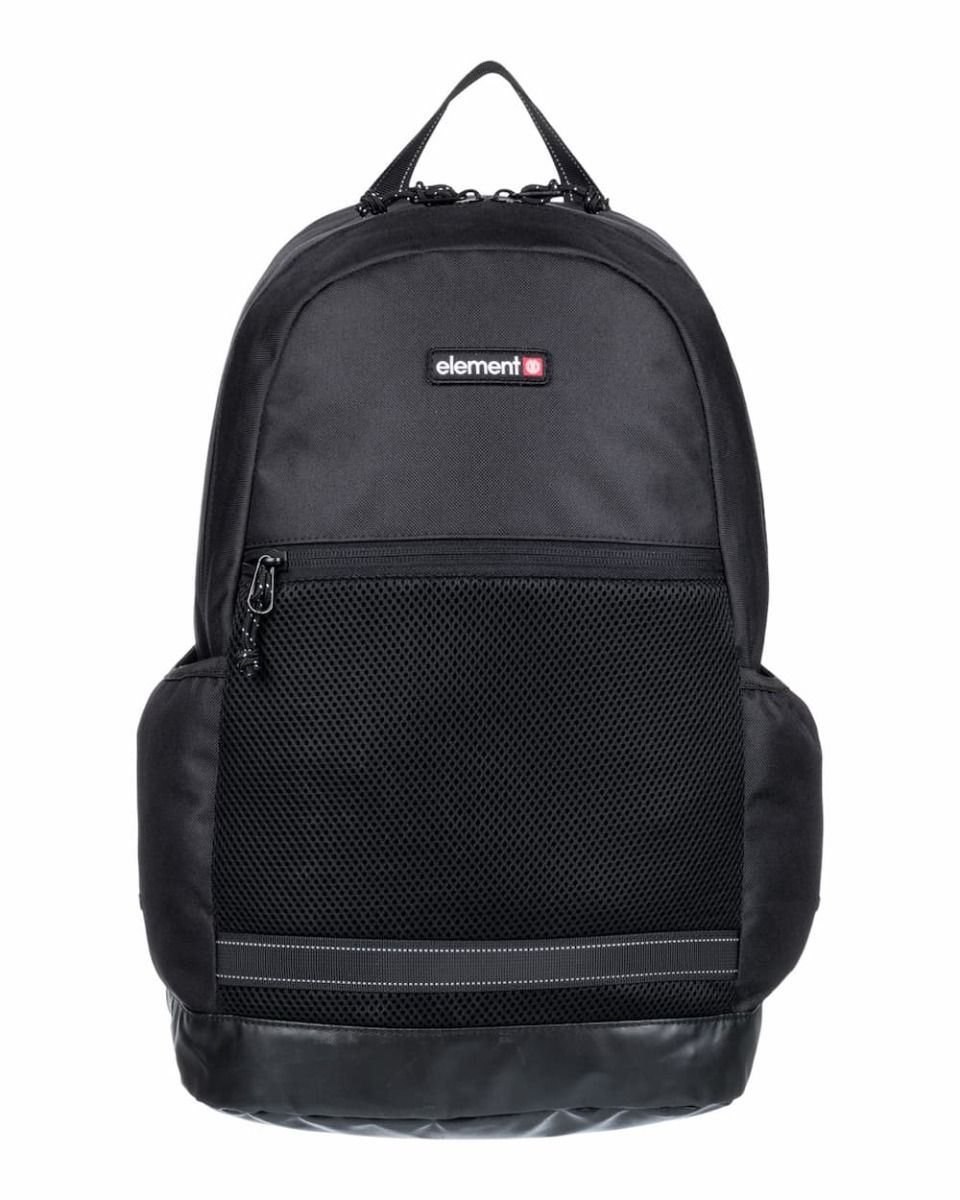 Esta práctica mochila sostenible cuenta con un amplio compartimento principal, bolsillo frontal con cremallera, 2 bolsillos laterales de malla para llevar tu botella de agua, compartimiento acolchado para portátiles de 13" a 15" con cierre de velcro, un bolsillo interno con panel organizador, base acolchada, panel posterior de rejilla transpirable en 3D, panel frontal y superior de ripstop reforzado, panel frontal superior reforzado con tejido anti-desgarros, piezas de seguridad reflectantes y dos parches de tela con el logo de Element tejidos en la parte delantera y en la correa izquierda.