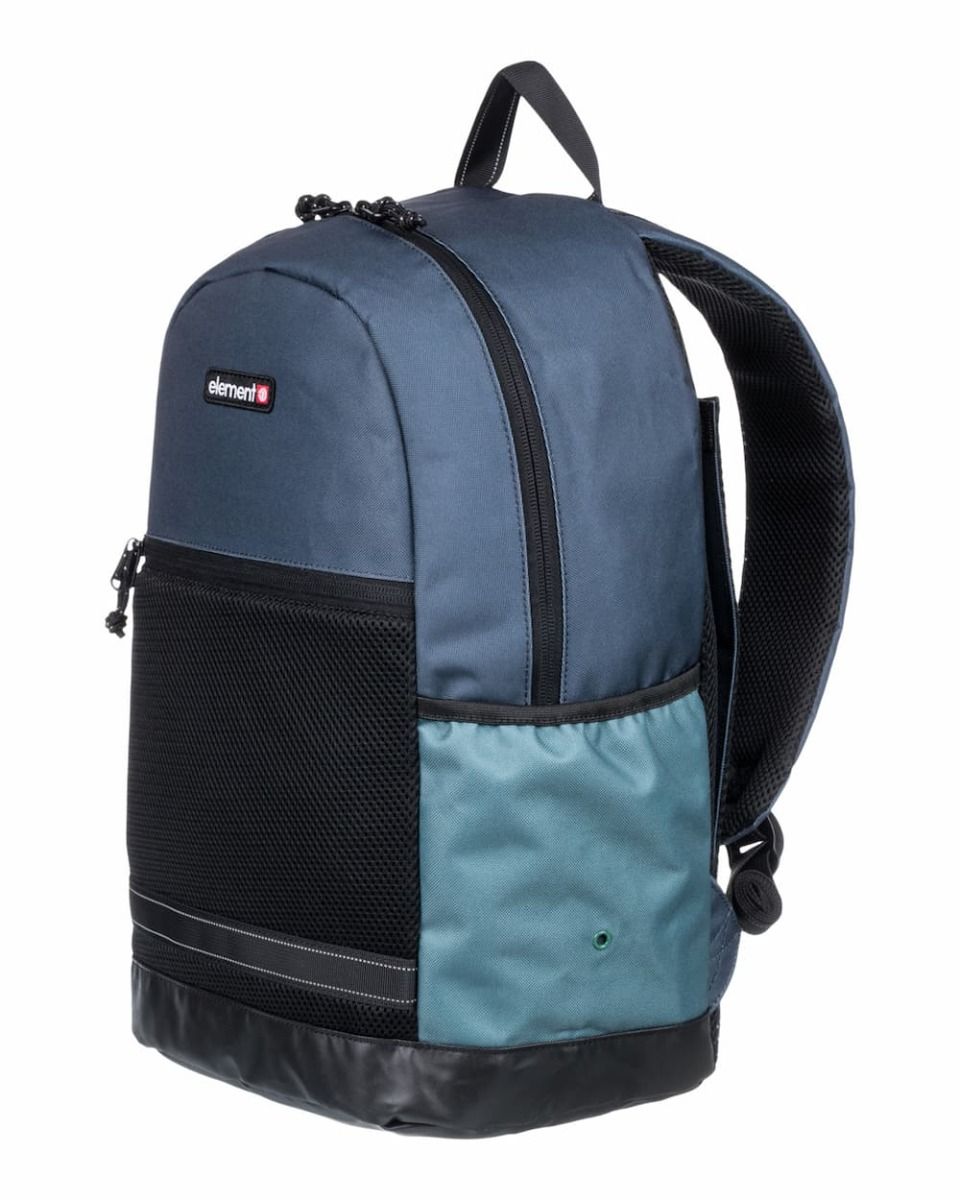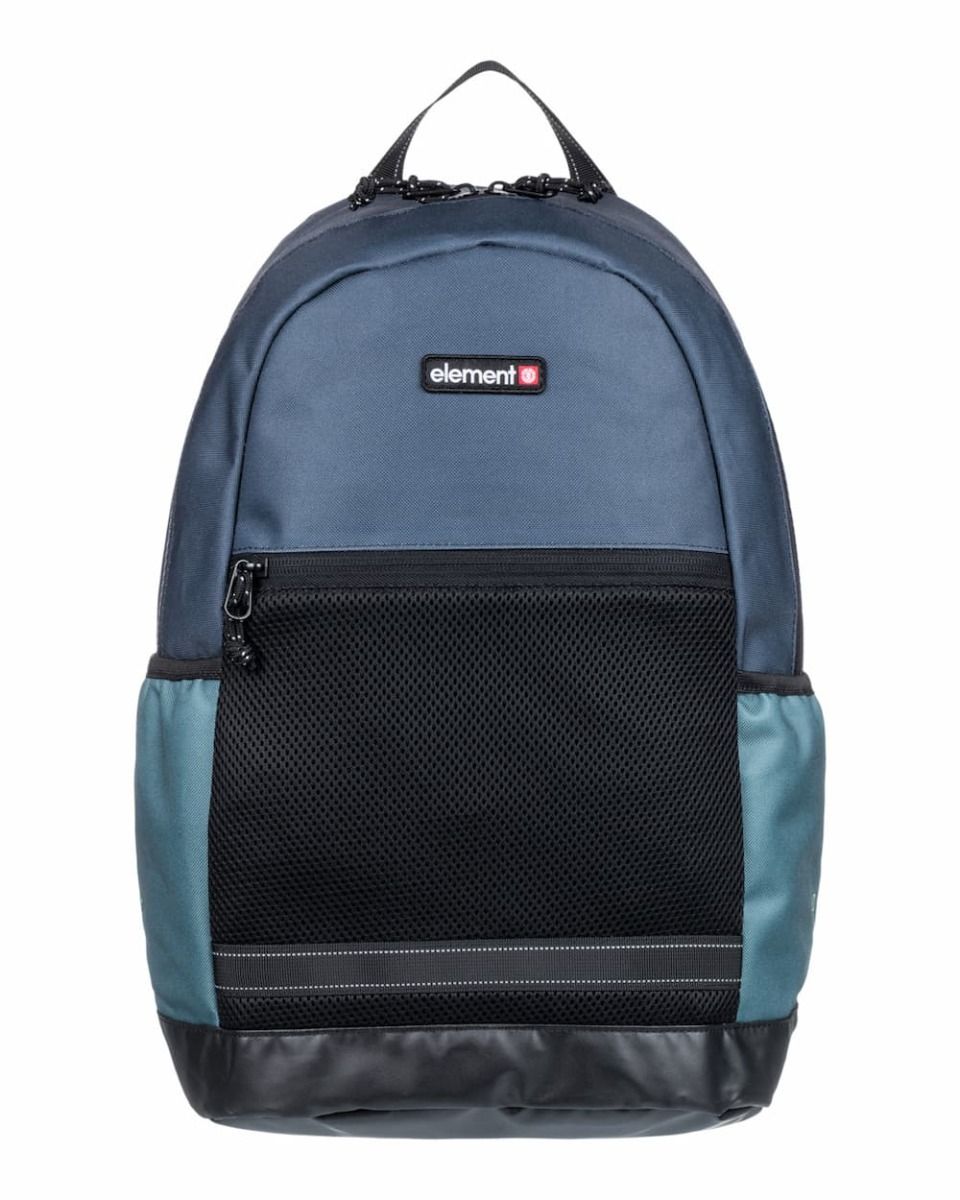 Esta práctica mochila sostenible cuenta con un amplio compartimento principal, bolsillo frontal con cremallera, 2 bolsillos laterales de malla para llevar tu botella de agua, compartimiento acolchado para portátiles de 13" a 15" con cierre de velcro, un bolsillo interno con panel organizador, base acolchada, panel posterior de rejilla transpirable en 3D, panel frontal y superior de ripstop reforzado, panel frontal superior reforzado con tejido anti-desgarros, piezas de seguridad reflectantes y dos parches de tela con el logo de Element tejidos en la parte delantera y en la correa izquierda.