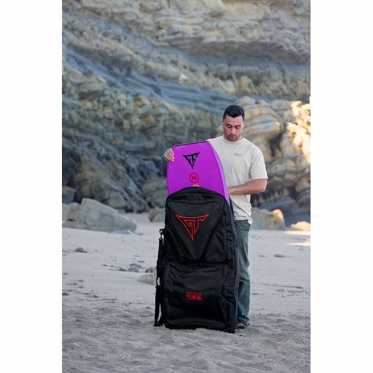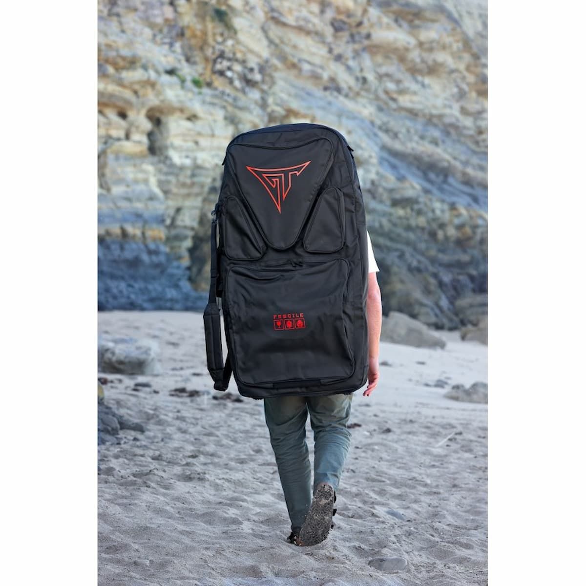 La funda tipo mochila para transportar tablas de bodyboard GT Travel Board Bag Negro-Naranja Neón es la opción perfecta para mantener tu equipo organizado y protegido en cualquier aventura.