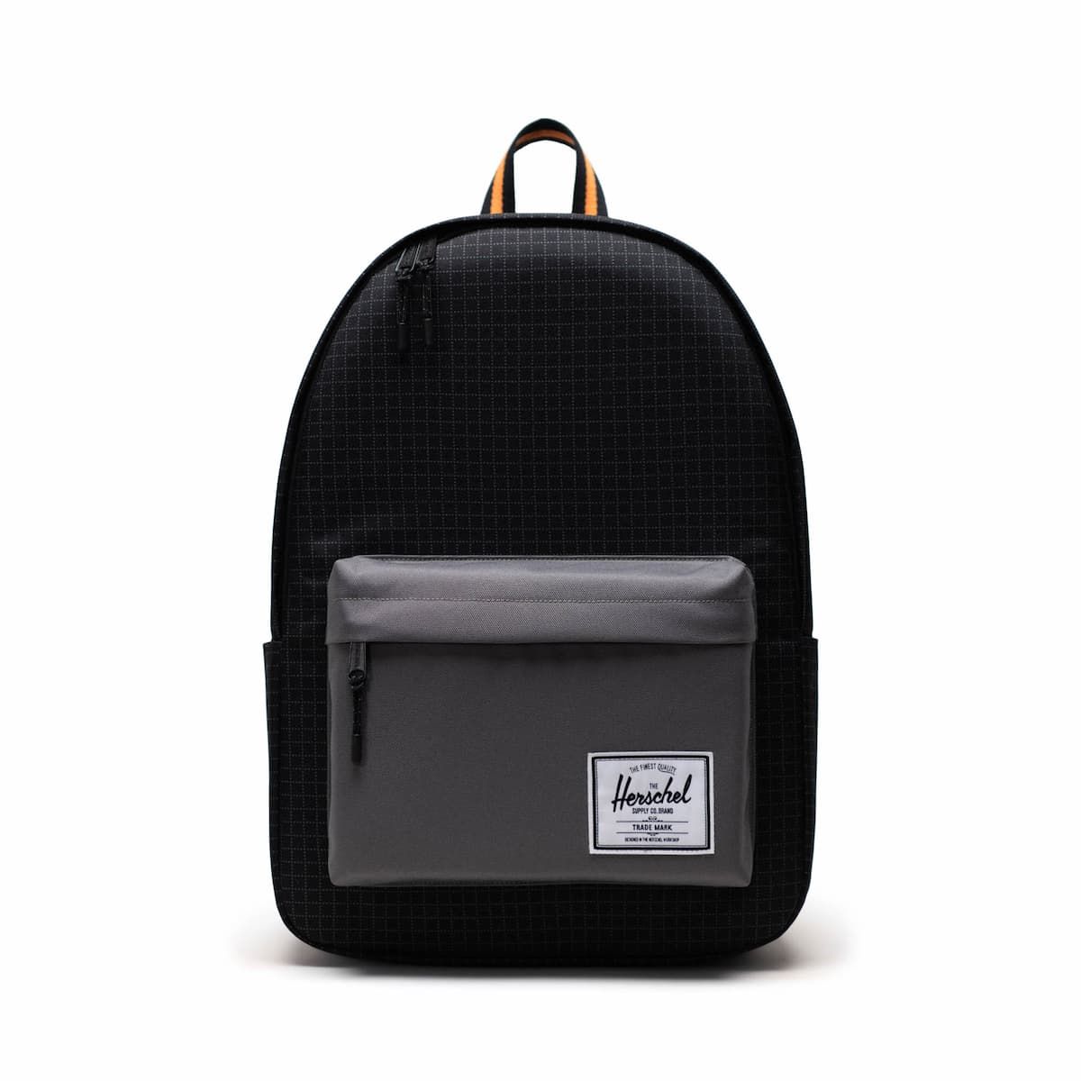 La mochila Unisex Classic™ X-Large Backpack 30L en negro, gris y naranja con detalles estampado tipo rejilla (Black Grid/Gargoyle/Sun Orange) de Herschel Supply Company está confeccionada con 100% poliéster.