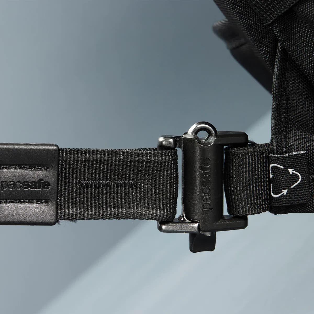 La mochila antirrobo Mission Gen II 40L Negra viene equipada con toda la tecnología antirrobo de Pacsafe como el sistema de cierre deportivo centralizado ROOBOAR™ compatible con candado, paneles de malla de acero EXOMESH® Slashguard resistentes a los cortes, clip de seguridad POPNLOCK con correas de anclaje bloqueables y resistentes a cortes, así como un bolsillo con bloqueo *RFIDsafe™ para proteger tu pasaporte y tarjetas de crédito frente a escaneos no deseados.