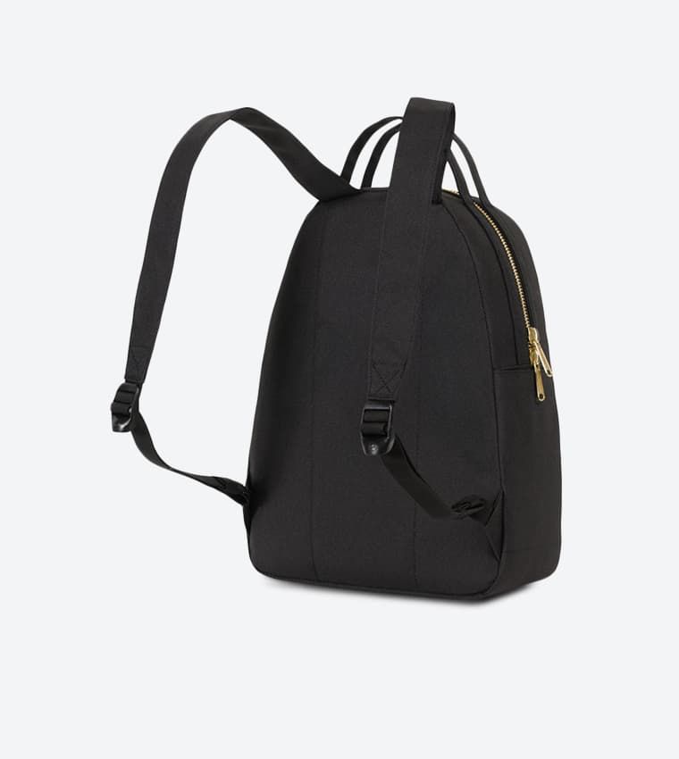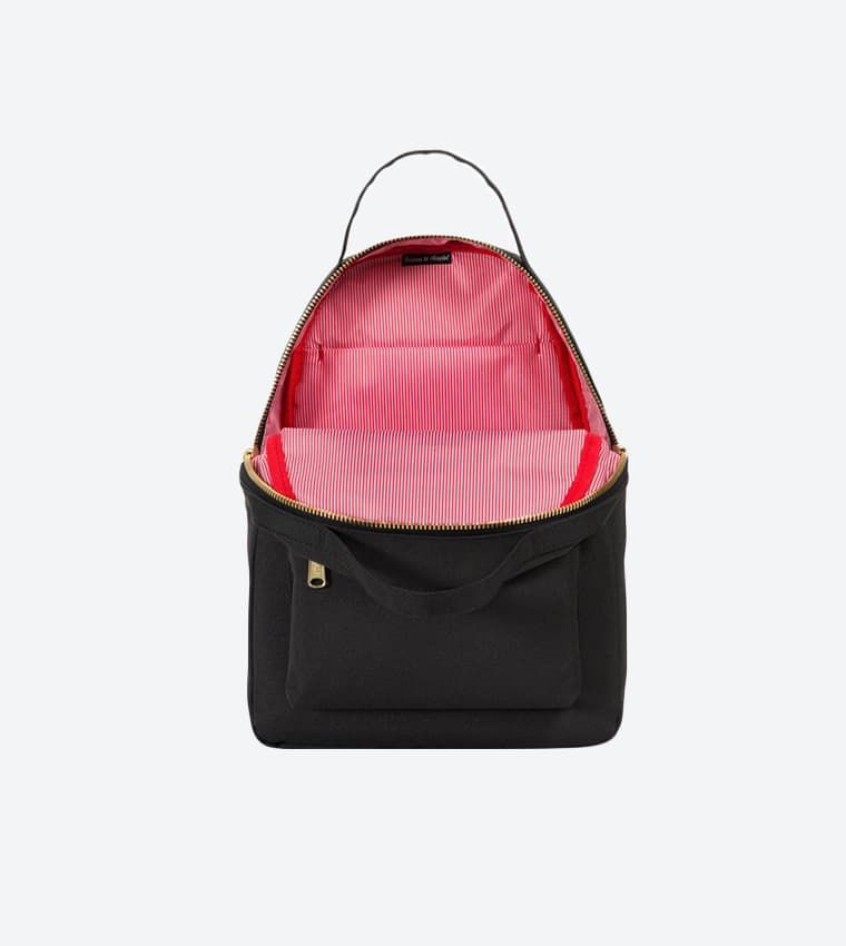 Esta práctica mochila en su versión pequeña cuenta con un amplio compartimento principal con el forro de tela a rayas rojas y blancas característico de Herschel Supply Company, cierre de cremallera metálica dorada y bolsillo interno, bolsillo exterior con cierre de cremallera metálica también dorada, bolsillos dobles para botellas de agua, y la exclusiva etiqueta de Herschel Supply Company cosida en contraste en el frente.