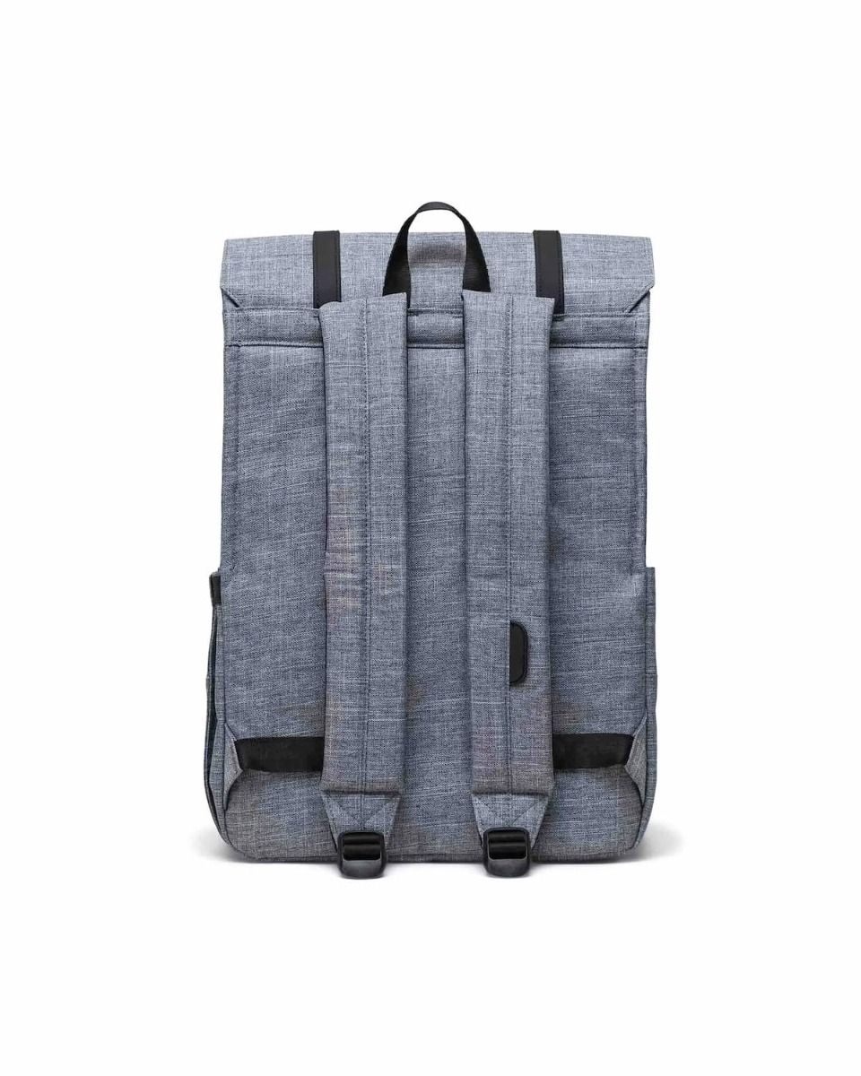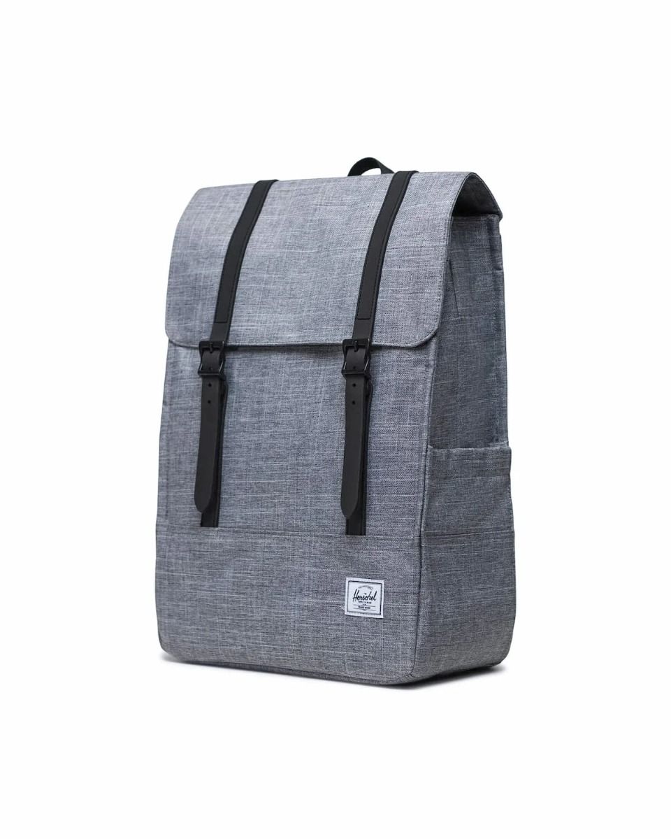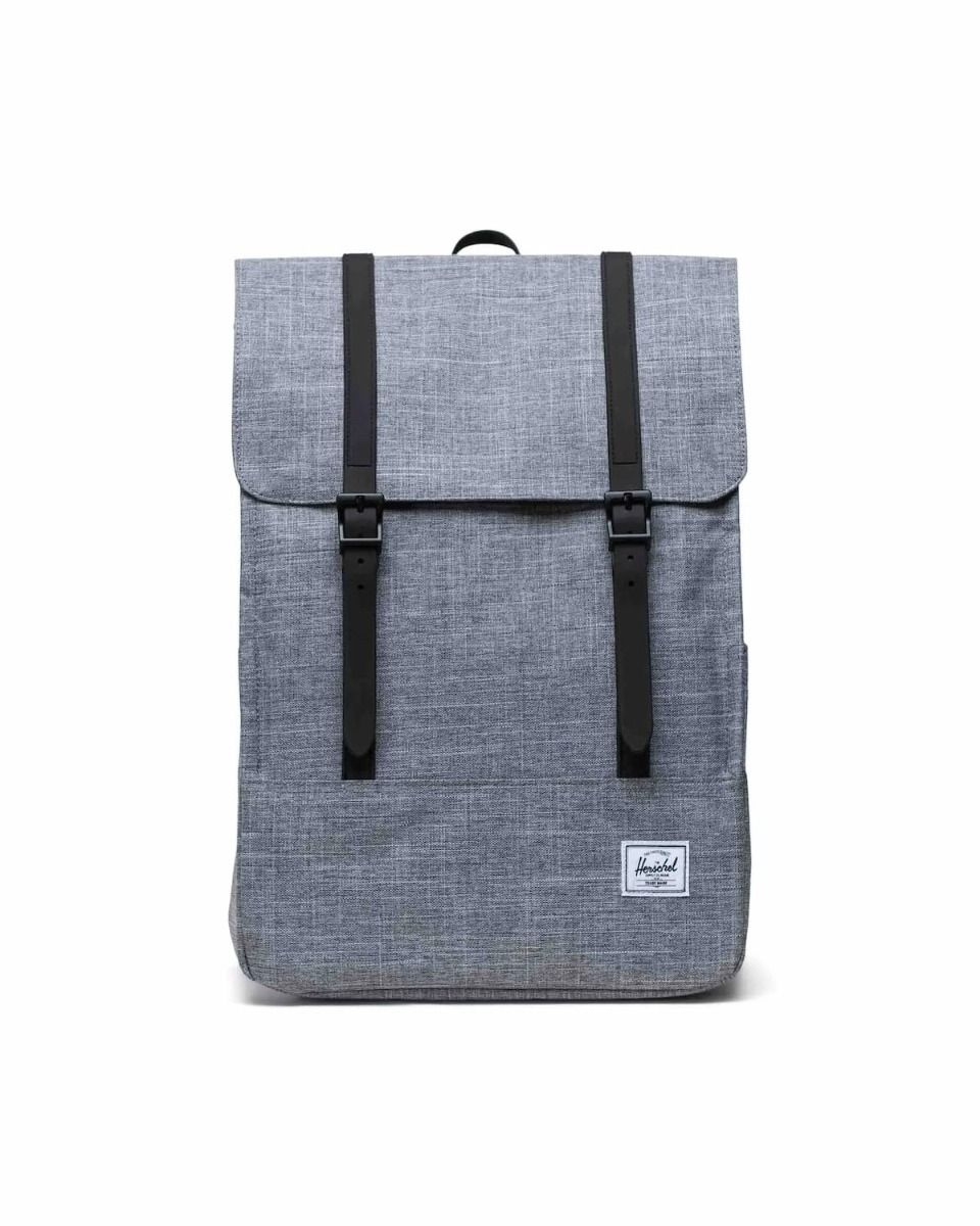 La mochila para hombre y mujer Survey Backpack 20L en tono gris jaspeado (Raven Crosshatch) de Herschel es la compañera perfecta para quienes necesitan una mochila confiable y elegante para sus desplazamientos diarios al campus o al trabajo. Diseñada pensando en la funcionalidad y la sostenibilidad, esta mochila combina un diseño aerodinámico con materiales reciclados de alta calidad, ideal para moverse cómodamente en bicicleta, a pie o en transporte público.