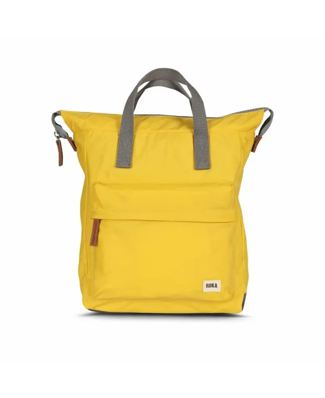 Mochila mediana impermeable y vegana Roka London Bantry B Sustainable Nylon en color amarillo álamo Unisex - 14 Litros - Aspen Yellow