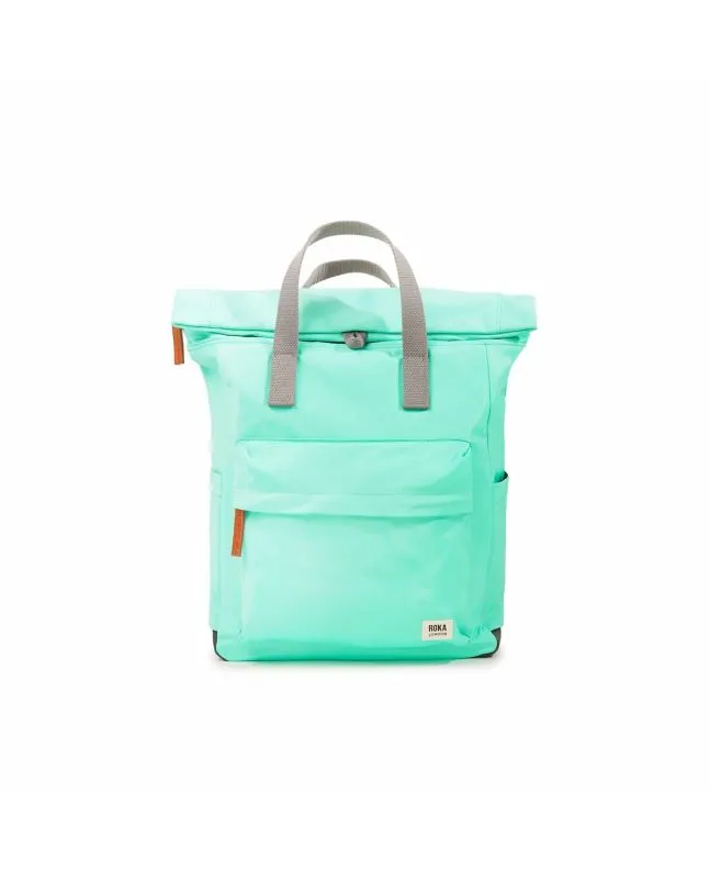 La mochila mediana impermeable con tapa enrollable Canfield B Sustainable Nylon Medium 15L en color verde capri (Granite) de Roka London está fabricada con materiales 100% veganos como el nailon reciclado, que le aporta un aspecto brillante y mayor suavidad al tacto.