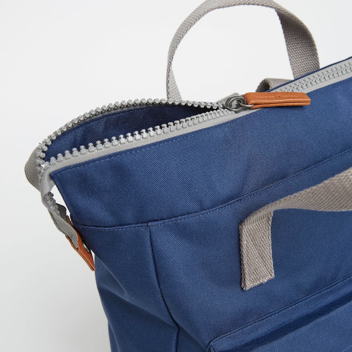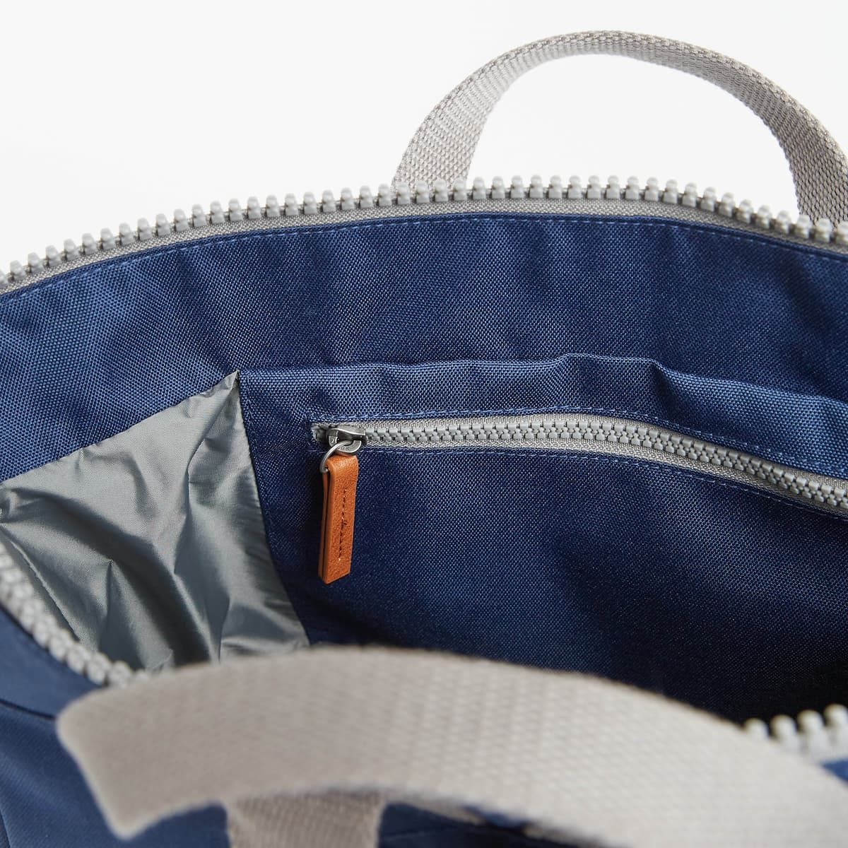 La mochila impermeable para hombre y mujer Bantry B Sustainable Canvas Medium 14L en color azul marino (Mineral) de Roka London está confeccionada con materiales 100% veganos como lona reciclada de aspecto texturizado y tacto mate con triple revestimiento para hacer frente a las inclemencias del tiempo y forro interior de nailon reciclado.