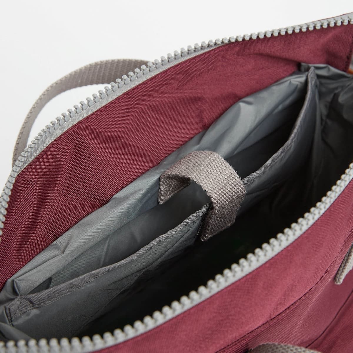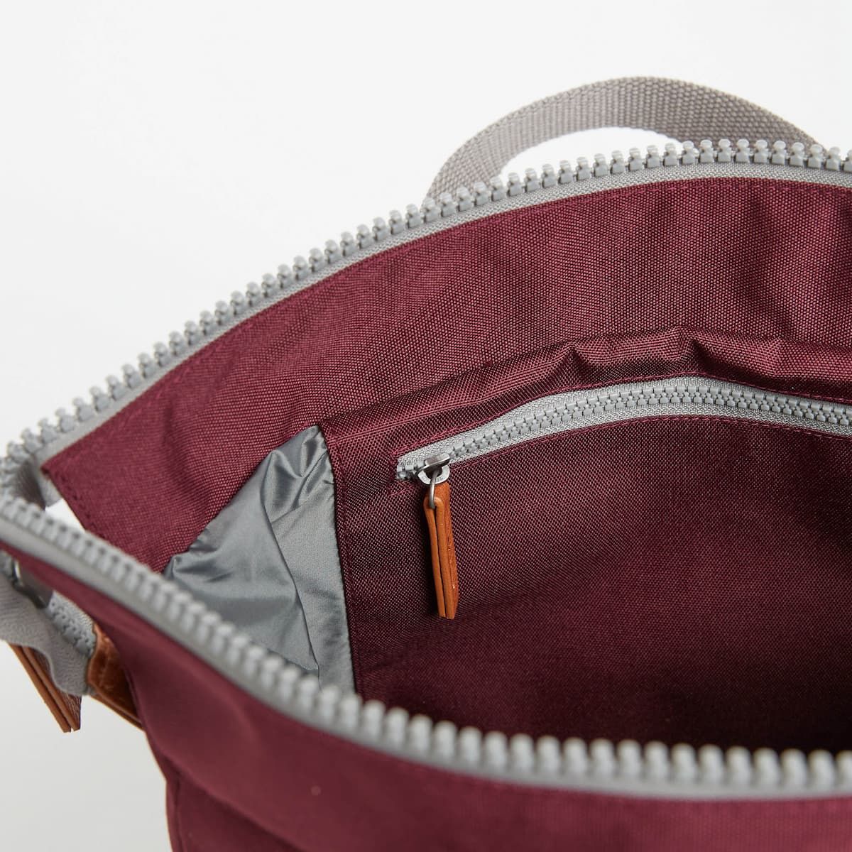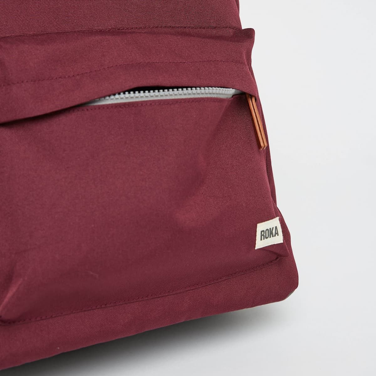 La mochila impermeable para hombre y mujer Bantry B Sustainable Canvas Medium 14L en color granate (Sienna) de Roka London está confeccionada con materiales 100% veganos como lona reciclada de aspecto texturizado y tacto mate con triple revestimiento para hacer frente a las inclemencias del tiempo y forro interior de nailon reciclado.