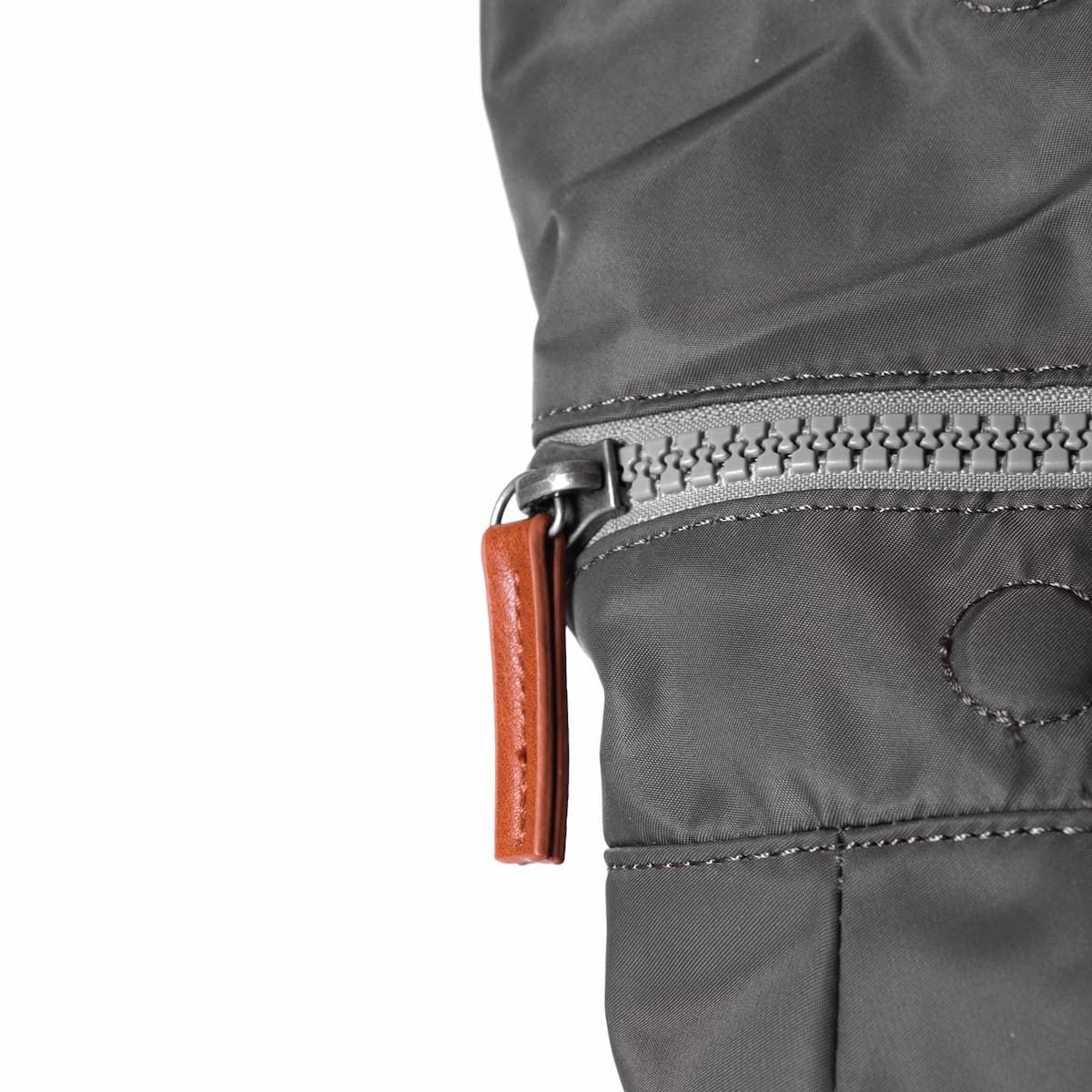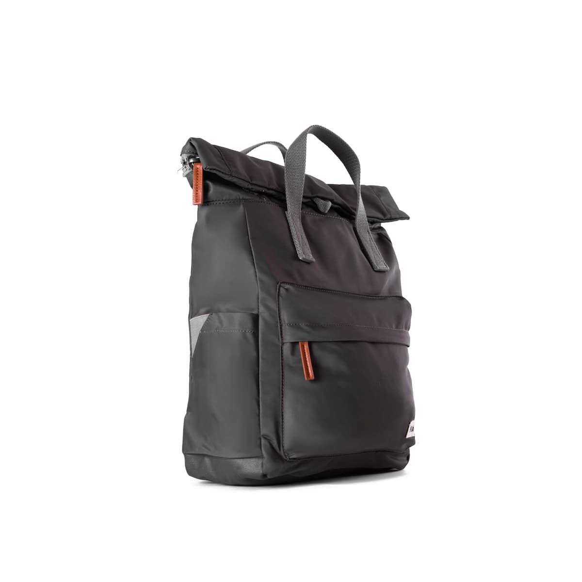 La mochila mediana impermeable con tapa enrollable Canfield B Sustainable Nylon Medium 15L en color gris grafito (Graphite) de Roka London está fabricada con materiales 100% veganos como el nailon reciclado, que le aporta un aspecto brillante y mayor suavidad al tacto.