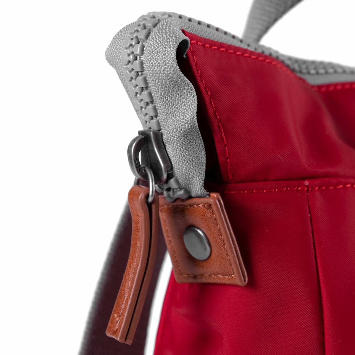 La mochila pequeña resistente al agua para hombre y mujer Bantry B Sustainable Nylon Small 7L en color rojo arándano (Cranberry) de Roka London está confeccionada con materiales 100% veganos como el nailon reciclado, que le aporta un aspecto brillante y mayor suavidad al tacto.