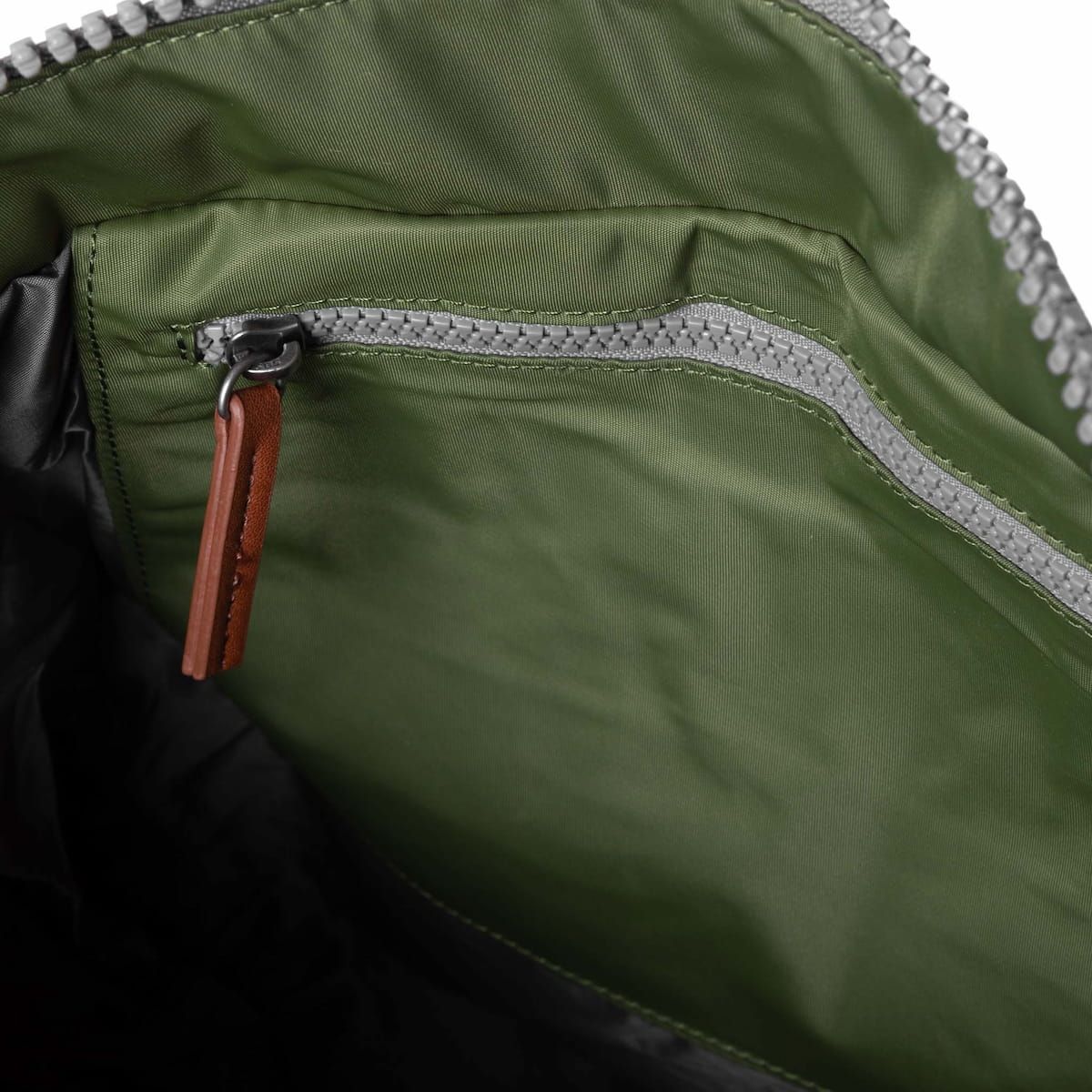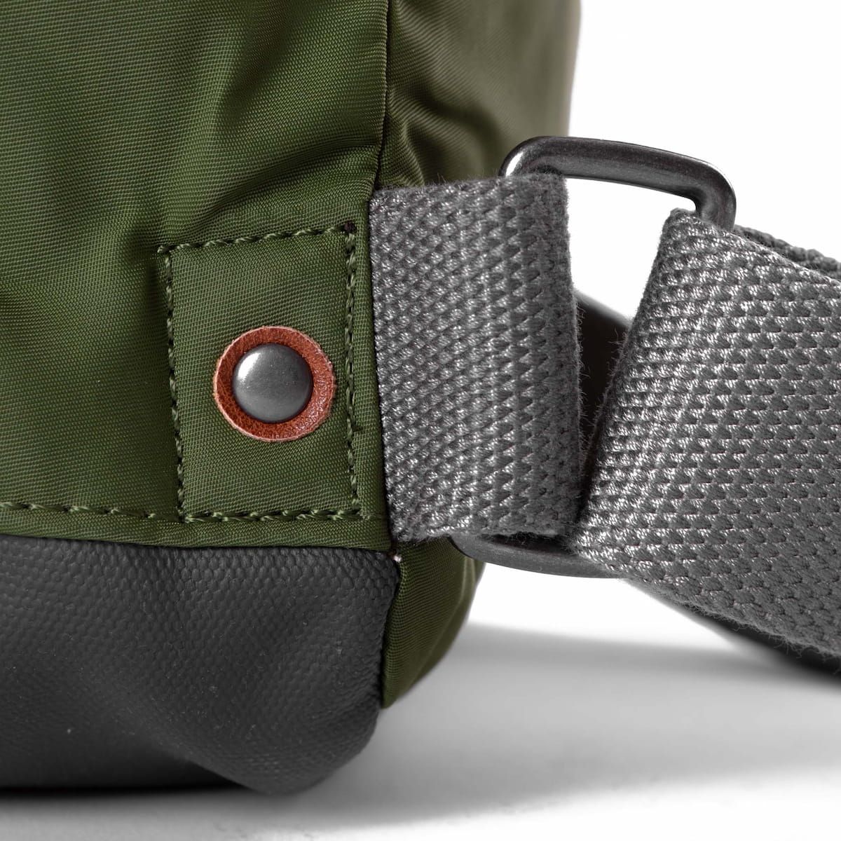 La mochila mediana resistente al agua para hombre y mujer Bantry B Sustainable Nylon Medium 14L en color verde aguacate (Avocado) de Roka London está confeccionada con materiales 100% veganos como el nailon reciclado, que le aporta un aspecto brillante y mayor suavidad al tacto.