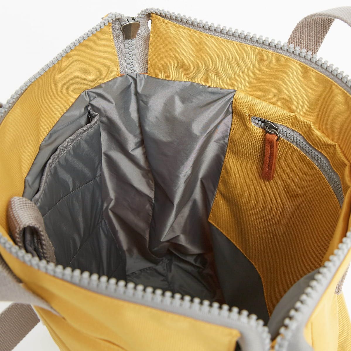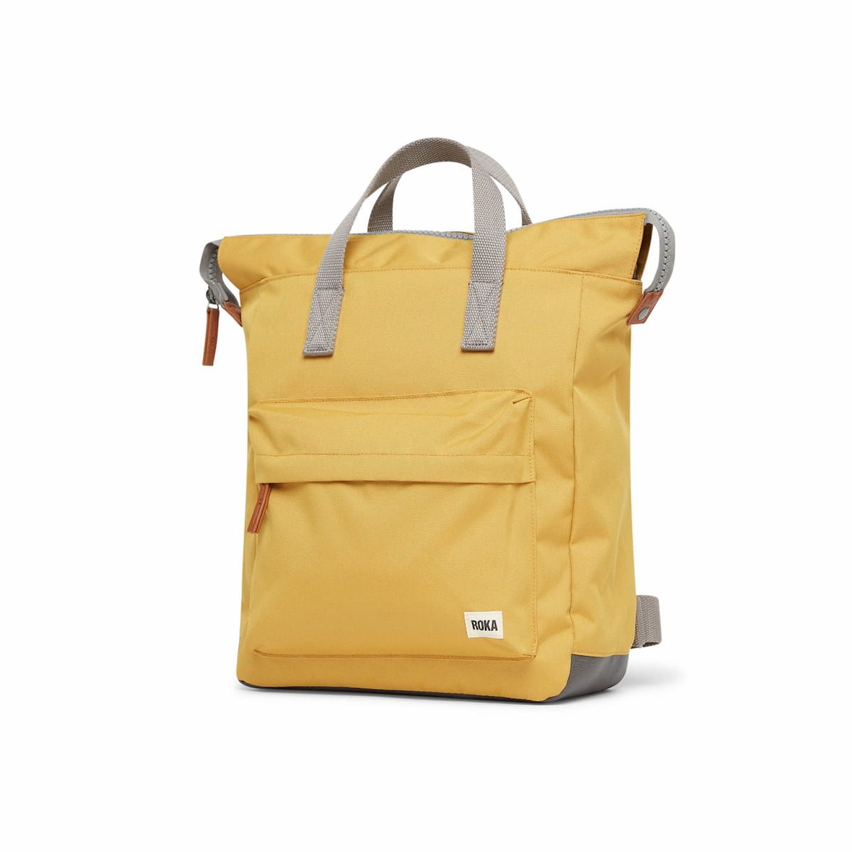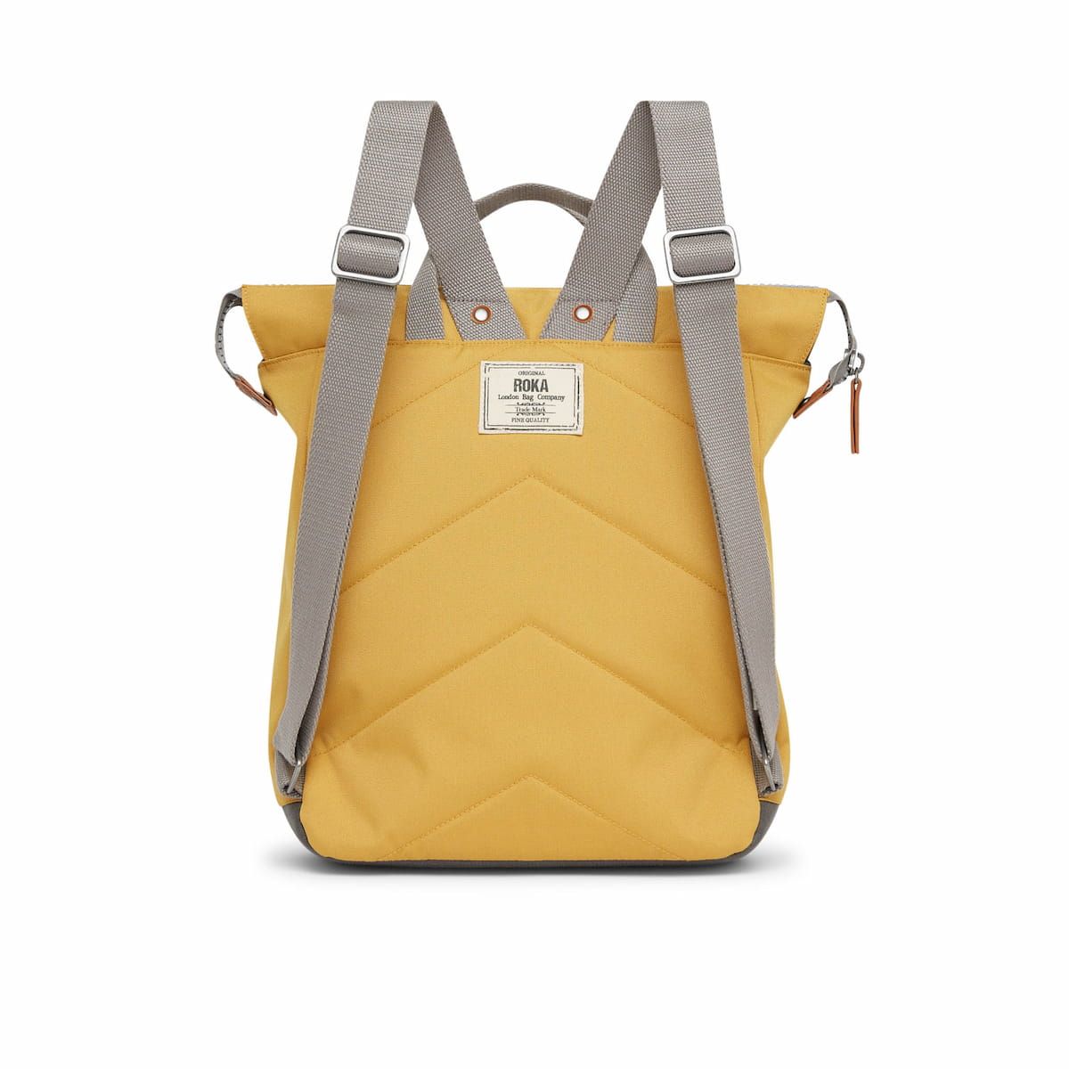 Esta mochila sostenible en cálido tono amarillo lino cuenta con un amplio compartimento principal, un bolsillo delantero cerrado por una resistente cremallera, un bolsillo interior seguro de cremallera, un compartimento interior acolchado para portátil o tablet de hasta 13", resistentes herrajes de metal galvanizado, panel posterior acolchado, cuatro correas de algodón para llevarla cómodamente a la espalda o en la mano, un parche de tela con el logo de Roka tejido en el bolsillo delantero y una etiqueta de garantía Roka London cosida en la parte posterior.