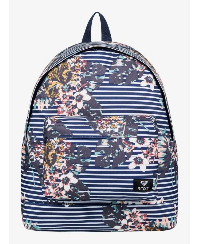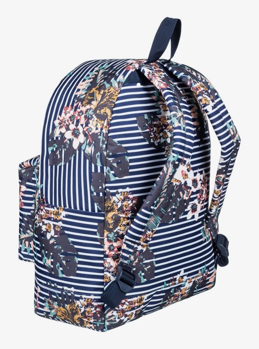 Esta mochila cuenta con un compartimento principal con cierre de cremallera, bolsillo frontal con cremallera, base acolchada, panel acolchado en la espalda, correas de hombro ajustables y acolchadas, asa superior y un parche de algodón ROXY tejido en el bolsillo delantero.