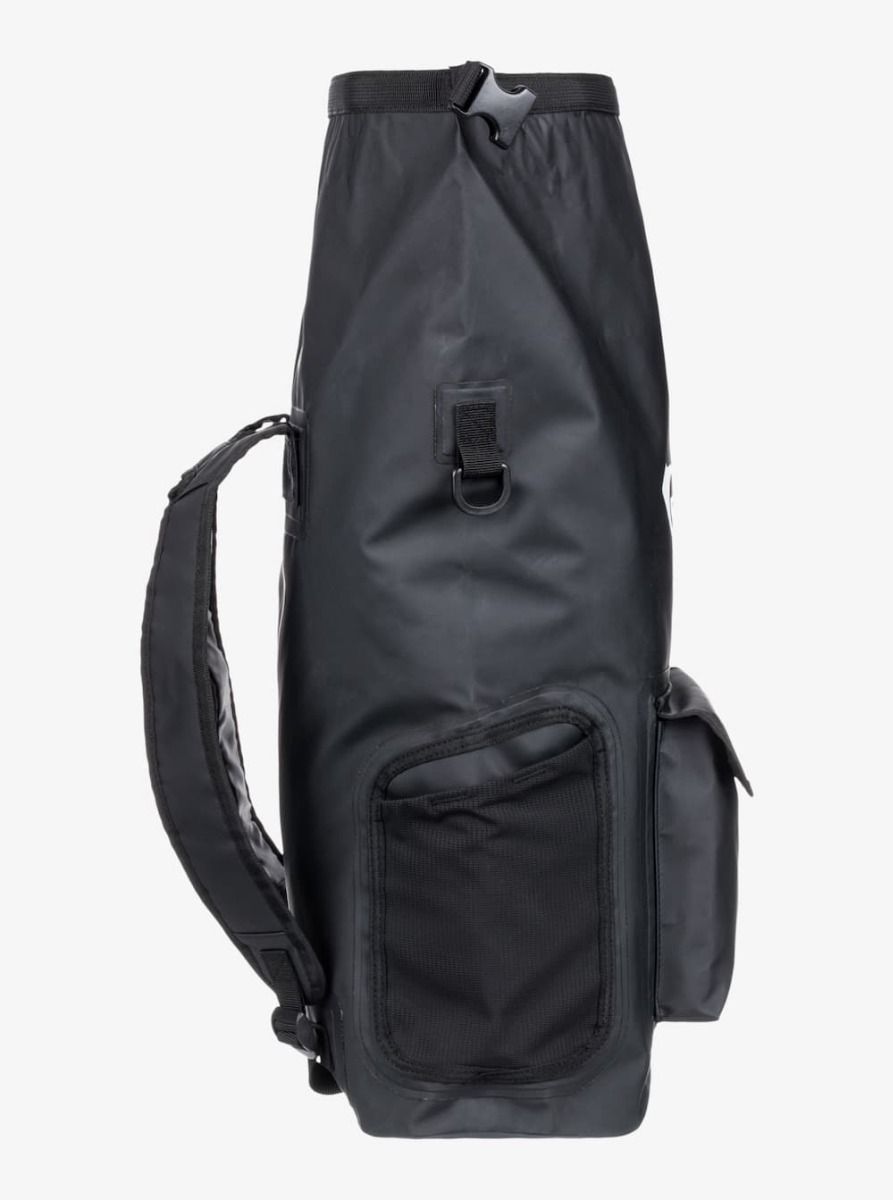 Esta práctica mochila cuenta con un amplio compartimento principal estanco reforzado para el traje de surf con cierre de hebilla, compartimento acolchado para portátil, dos bolsillos laterales, bolsillo frontal con cremallera, bolsillo para gafas en la parte superior, correas acolchadas ajustables para los hombros, asa superior con cierre de click y los logos de Roxy estampados.