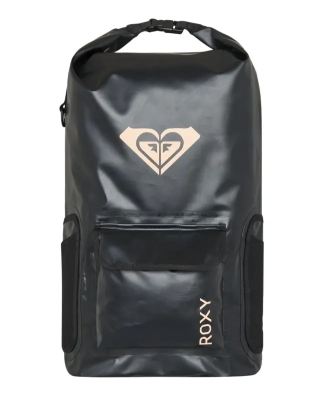 Mochila estanca de surf Roxy Need It 50L en negro antracita, ideal para transportar traje de neopreno y material húmedo con máxima protección.