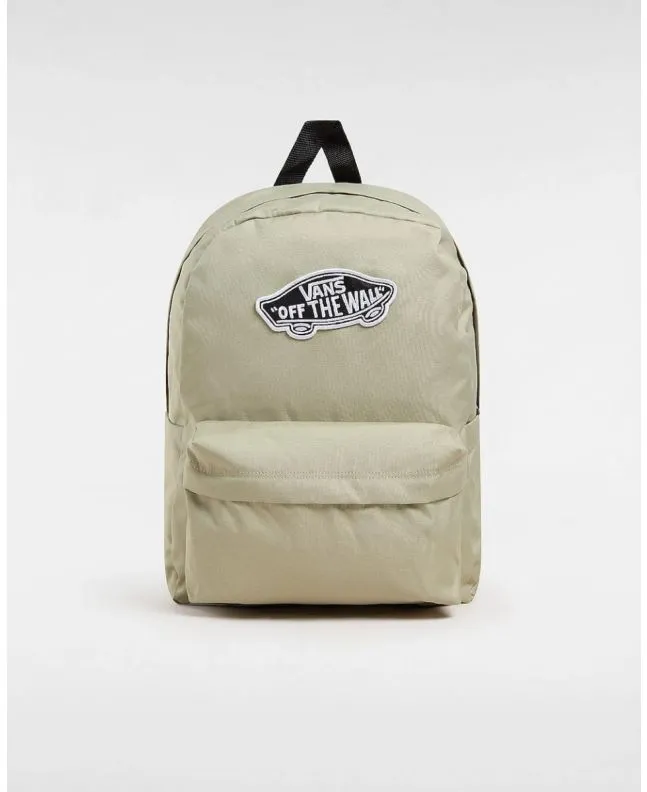 Esta mochila escolar de estilo clásico en color beige cuenta con un compartimento principal grande con cierre de cremallera, una funda interior para portátiles de hasta 15 pulgadas, un bolsillo frontal con compartimento organizador, interior con el emblemático estampado checkerboard, un bolsillo lateral para la botella de agua, asa superior, correas de hombro ajustables y acolchadas de corte recto, el emblemático parche con el logotipo del skate «Off The Wall» tejido en el frontal, el logotipo Checkerboard Globe y una etiqueta de Vans® cosida en la correa izquierda.