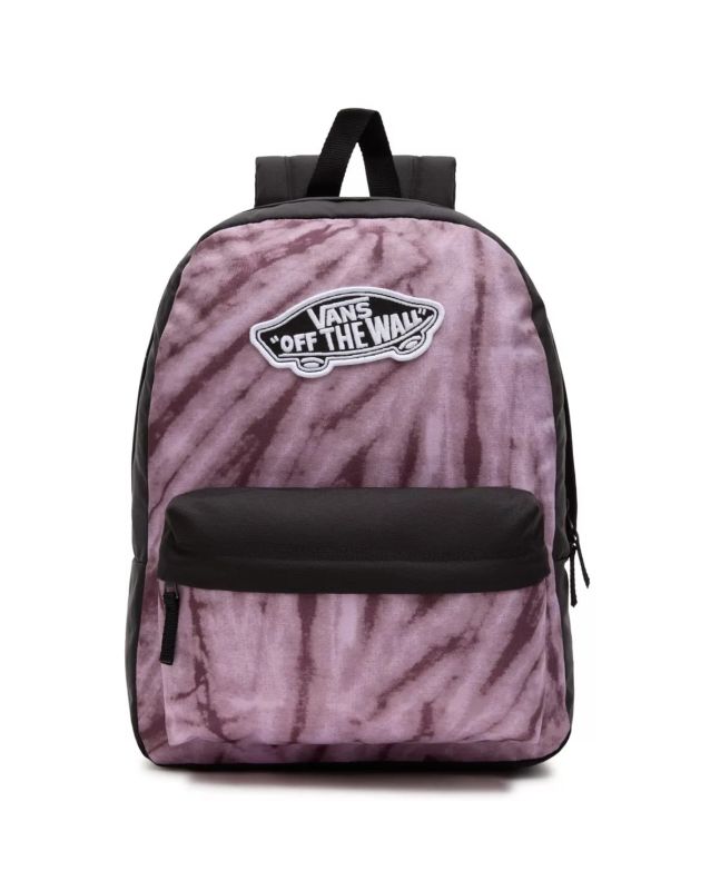 La mochila WM Realm Backpack 22L para mujer de Vans en tono púrpura tie dye y negro (Fudge-Black) está confeccionada con poliéster 100% reciclado.
