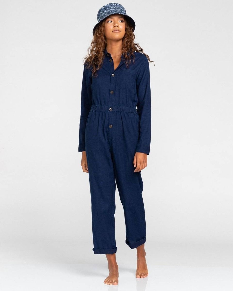 El mono de manga larga para mujer Elise Indigo de Element Brand está confeccionado con tejido de lona de algodón color índigo.