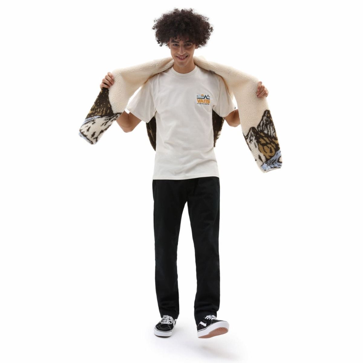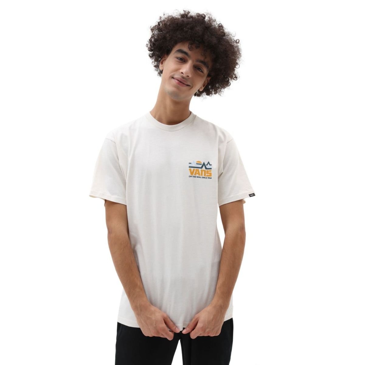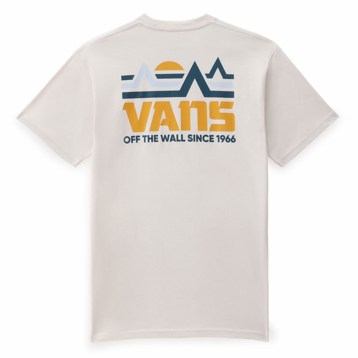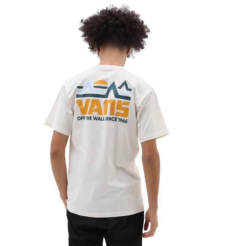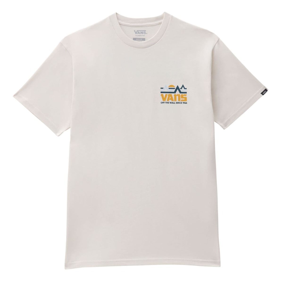 Esta camiseta de corte clásico cuenta con cuello redondo, manga corta y un gráfico de una cordillera junto con el logo de Vans estampado en el lado izquierdo del pecho y en la espalda.