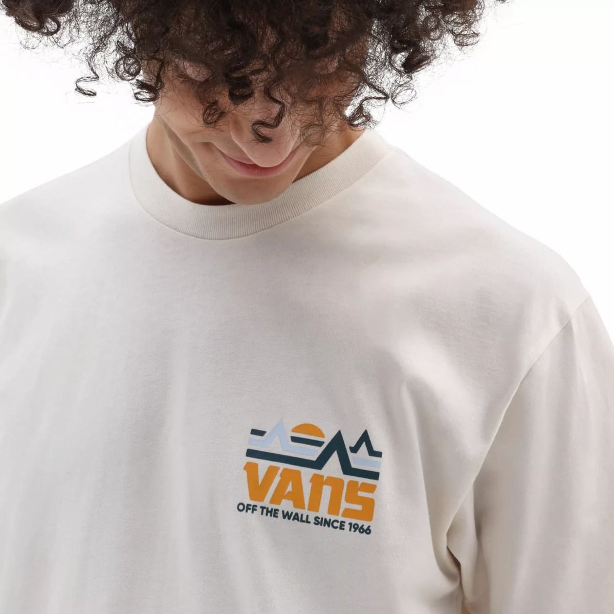 La camiseta para hombre MT. Vans en blanco hueso (Antique White) de Vans ha sido confeccionada con tejido 100% algodón gran gramaje cardado e hilado en anillos.