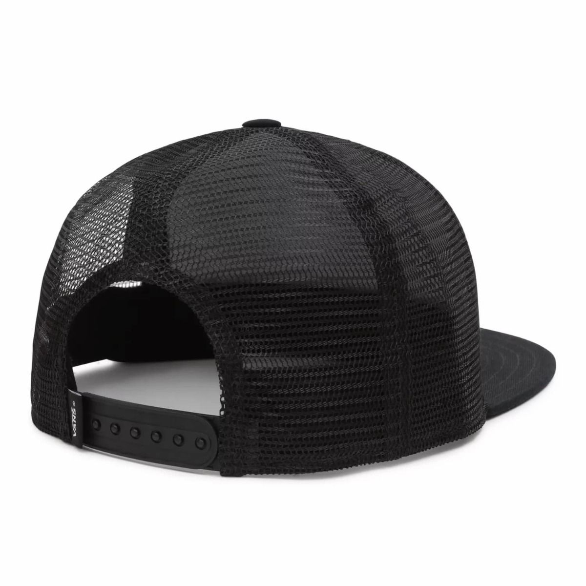 La gorra de estilo camionero para hombre Murray Trucker negra tiene una etiqueta de Vans tejida en el cierre.