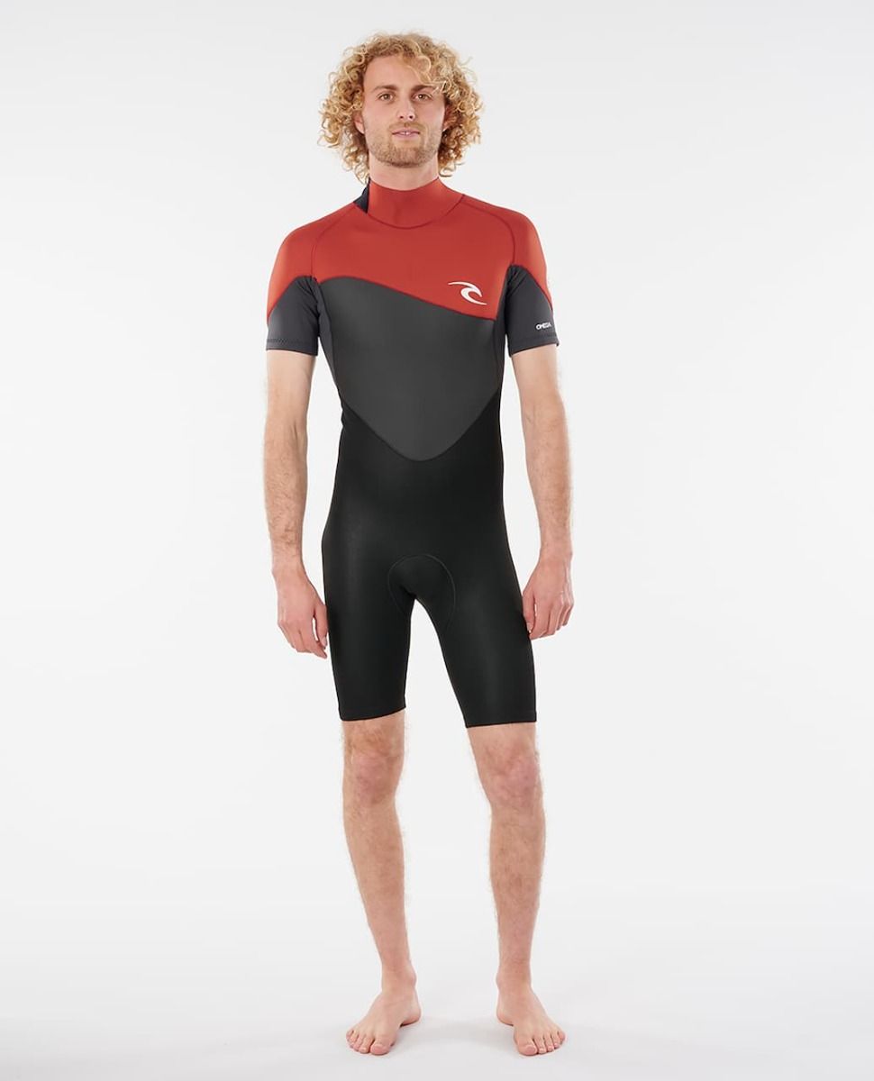 Traje de Surf de primavera con manga corta y cremallera en la espalda Rip Curl Omega 1.5mm en color negro y granate para hombre