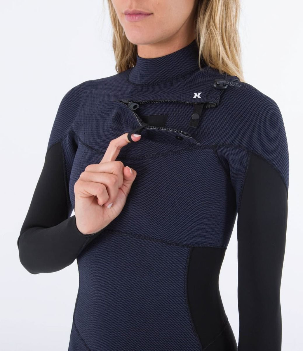 El traje de neopreno para mujer Woman Plus 4/3mm Chest Zip azul marino tiene el sello de garantía Hurley.
