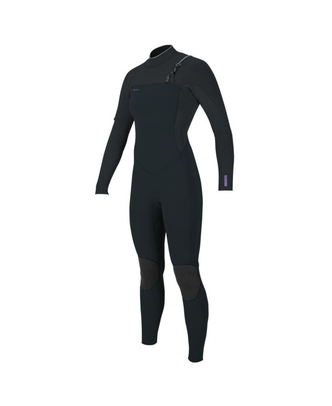 El traje de surf integral con cremallera en el pecho para mujer Women's Hyperfreak 5/4 Plus Chest Zip Full en tono gris (Gunmetal-Gunmetal) de O'Neill está confeccionado con neopreno Technobutter 3 en la zona central del cuerpo y en las piernas, y neopreno Technobuter 3X en brazos y hombros sin emplear disolventes en el proceso de laminado (Aqua Alpha Solvent Free).