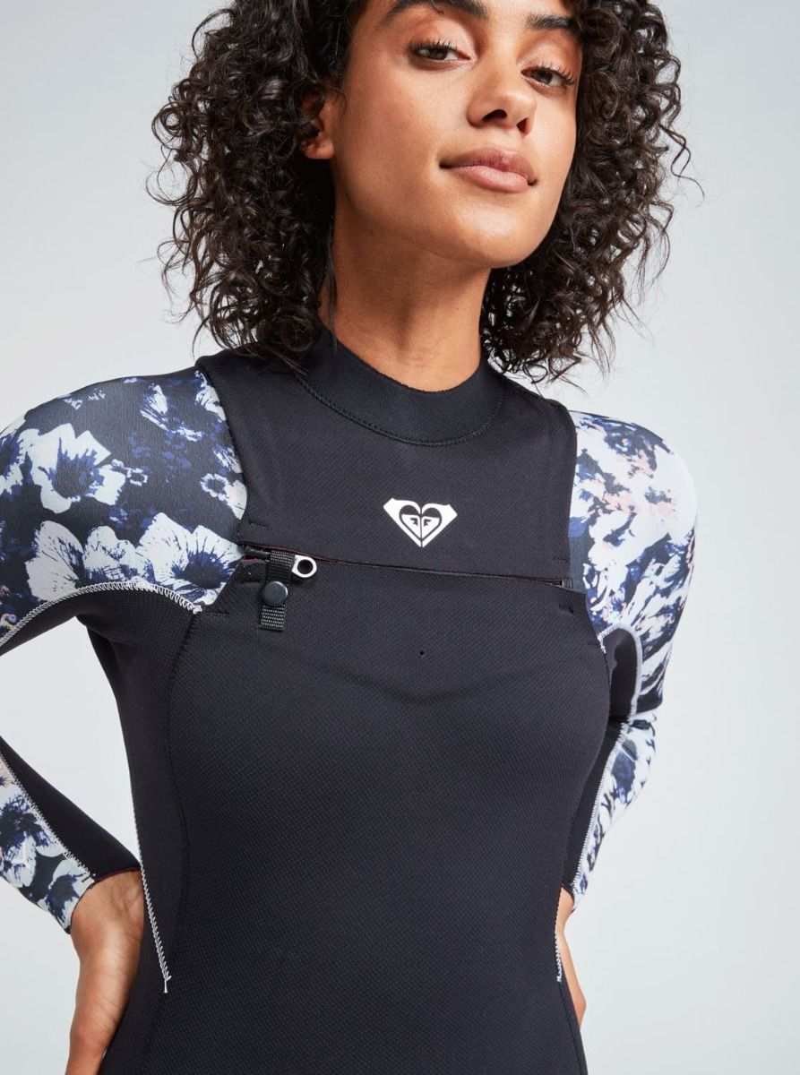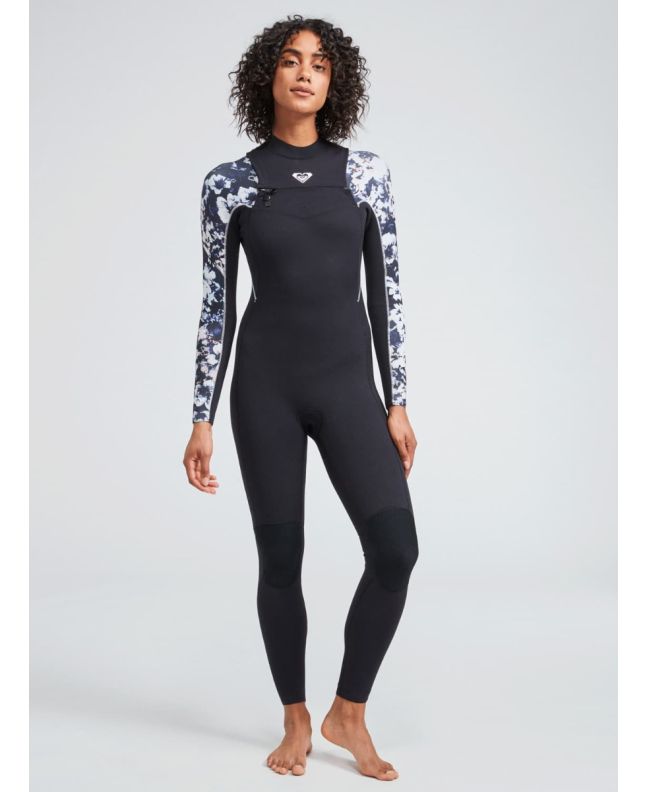 Neopreno Roxy 4/3mm Elite Chest Zip Negro Floral