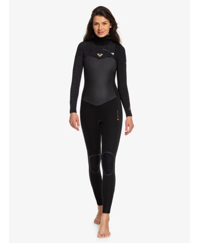 Traje de Neopreno Roxy Performance 5/4/3 con cremallera en el pecho y capucha en color negro para mujer