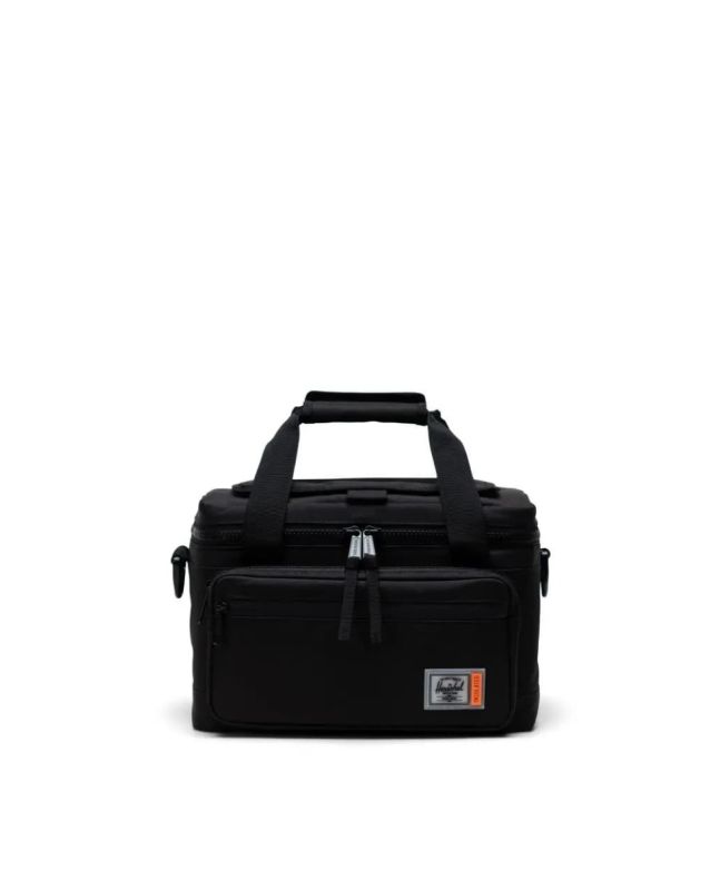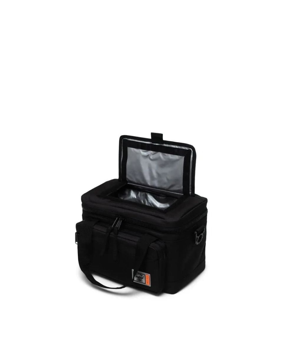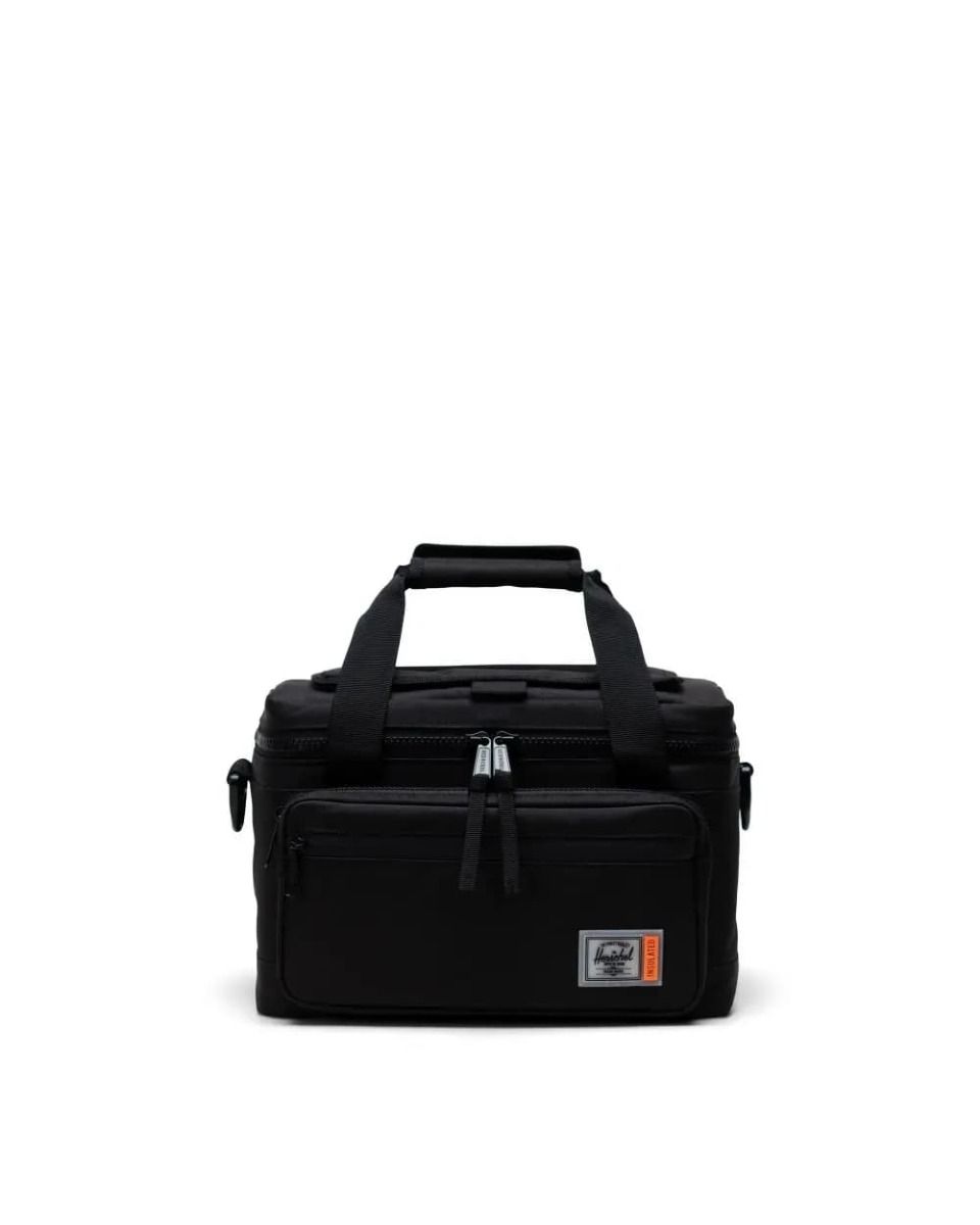 La nevera portátil con aislamiento Pop Quiz 12L negra presenta un diseño clásico y elegante con tapa de acceso rápido, un amplio compartimento principal con cierre de cremallera en forma de U, un bolsillo frontal con cremallera impermeable, dos asas de transporte reforzadas, una correa de hombro acolchada, extraíble y ajustable para mayor comodidad, un práctico llavero abrebotellas y el logotipo de Herschel bordado en la parte delantera.